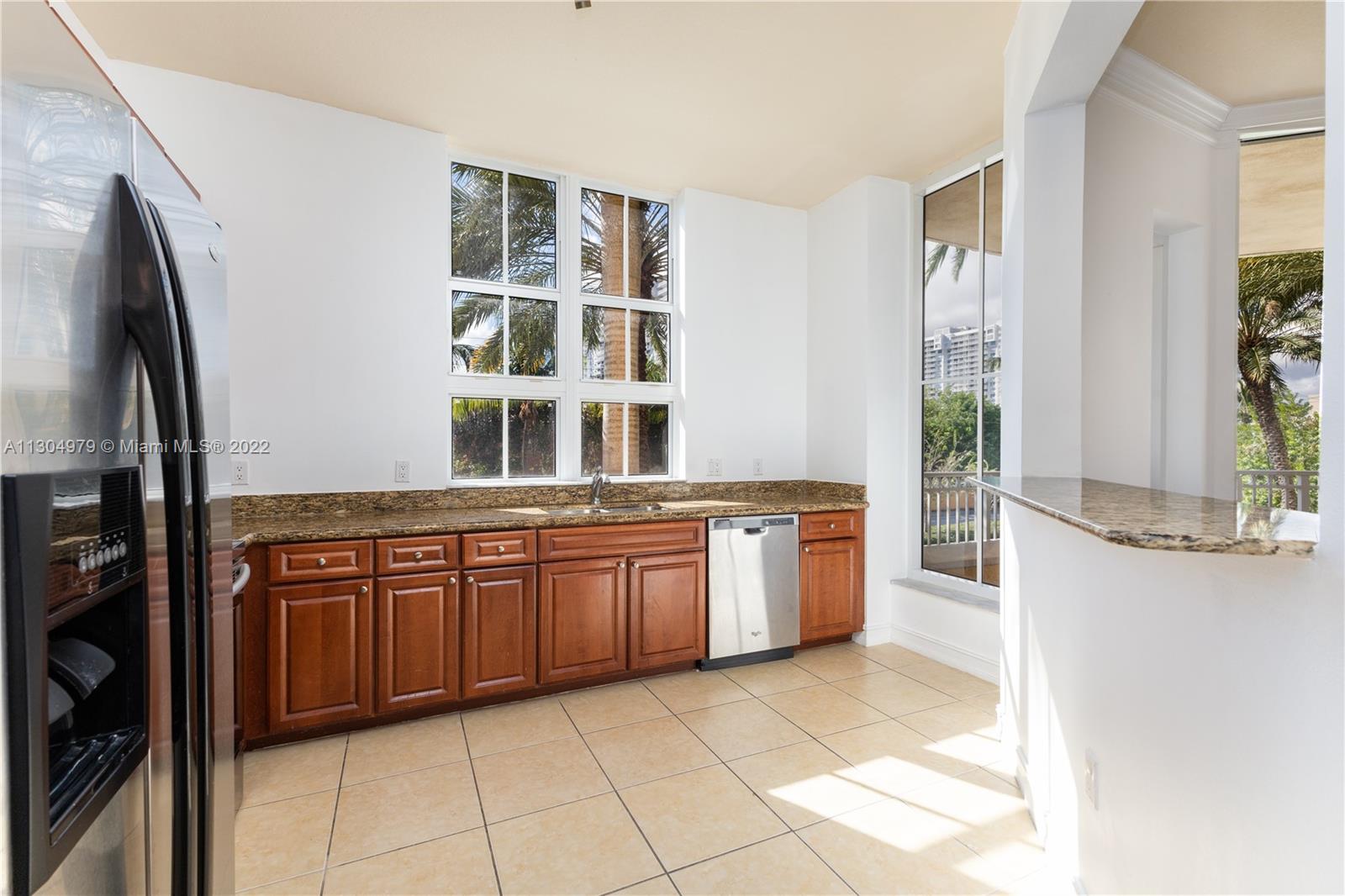 Spacious 2 bedrooms, 2 baths unit at the mediterranean style condo Alaqua, located in the heart of Aventura. The unit features an open floor plan with split bedrooms, 10ft high ceilings and lots of natural light. Enjoy the large balcony with access from living room and bedroom, kitchen with granite countertops and stainless steel appliances, washer and dryer in the unit, and 2 assigned parking spaces. The condo includes a pool, spa, club/billiard room, conference room, gym overlooking the canal and a boardwalk by the canal for walking and relaxing. Maintenance includes cable and internet. Click on "Virtual Tour" for video walkthrough.