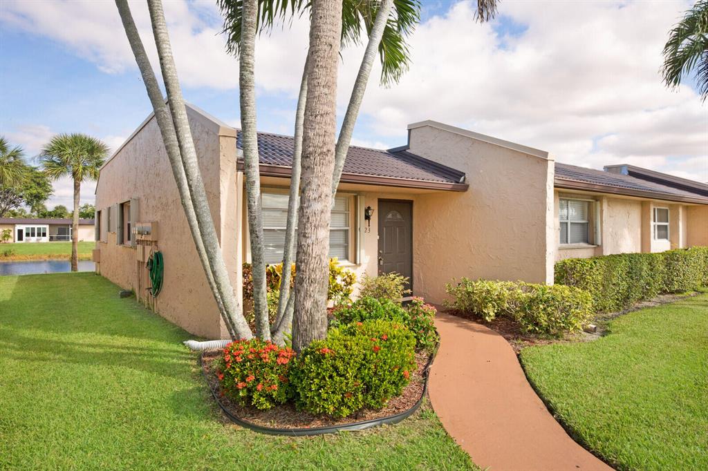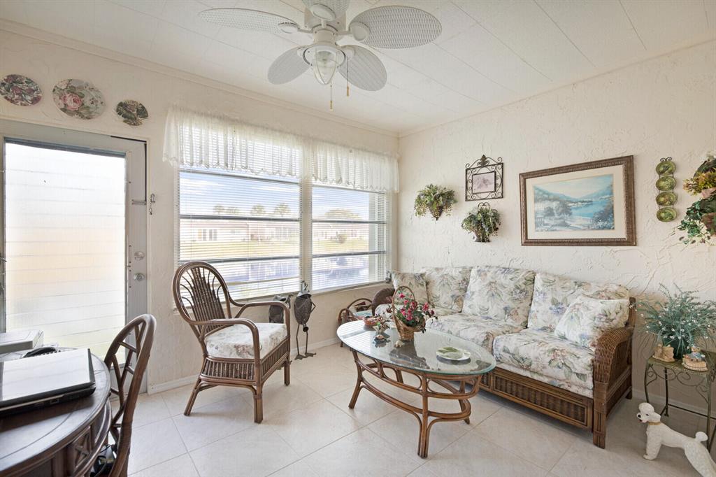 This gorgeous 2 bedroom. 2 bathroom, waterfront villa is not to be missed. Featuring fresh, neutral paint throughout and ceramic tile in the living spaces. The kitchen boasts fresh white cabinetry and newer white appliances along with a lovely window-side breakfast nook area. The spacious bedrooms offer plenty of space for all decor as well as ample closet space. The ensuite bathroom offers a tub for soaking and the secondary bathroom offers a walk in shower with seating area. Enjoy morning coffee overlooking the lake from the fully enclosed Florida room. This villa has been beautifully maintained and updated and is only steps to the clubhouse!