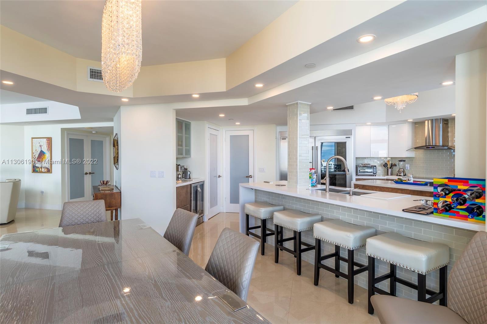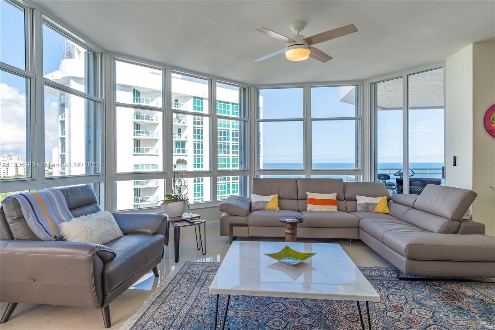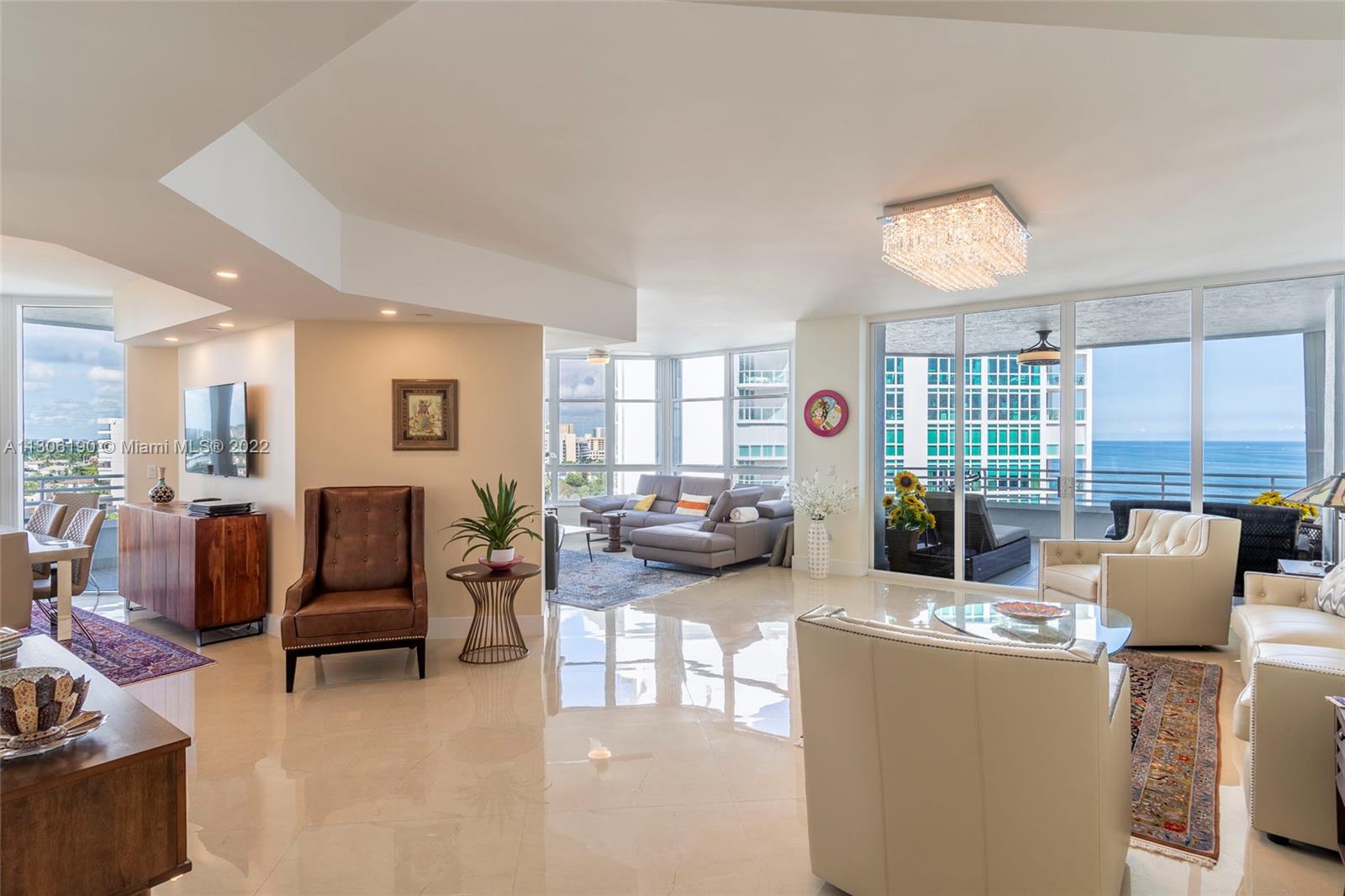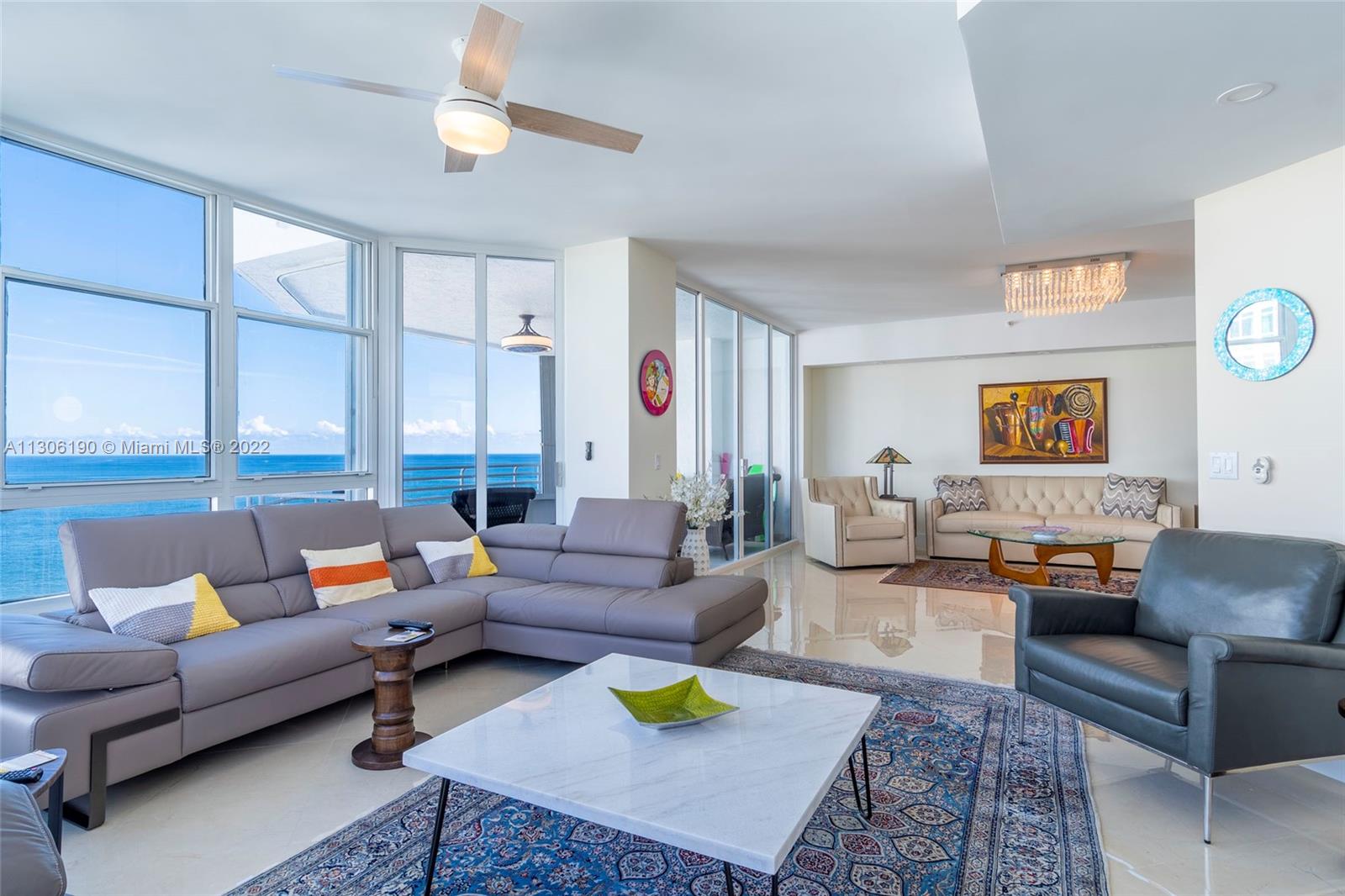 Entirely remodeled to modern luxury, this one-of-a-kind ocean front condo boasts wrap around balconies with 180 degrees, unobstructed floor to ceiling views of the ocean and the city from everywhere. Located in the sought-after C-stack of the Corniche Condo, this large 3 BR, 3 Bathrooms offers 2 spacious master suites on opposite sides with custom walk-in closets, marble bathrooms, dressing room, spectacular open concept kitchen with island, large pantry, formal dining room, family/media room, living room. Comes with a deeded garage space & storage area. Building has recently gone through major multi-million renovation. Amenities include Tennis, Pool, beach access, BBQ area, party room, biz center, library, gym, billiard & much more. See the virtual tour for more details. Must see!!!