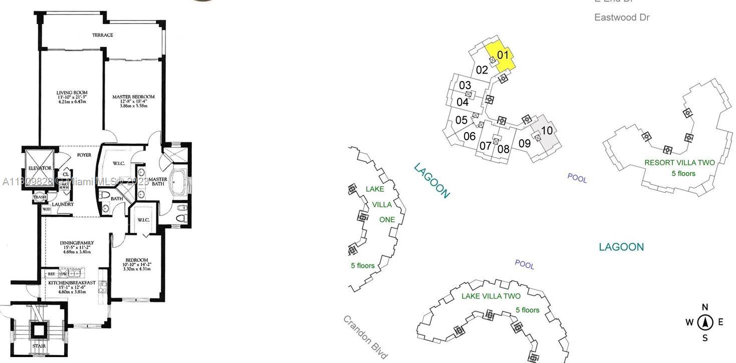 Don't miss the opportunity to own the largest 2/2 plus DEN in Resort Villas exclusive Ocean Club Resort. Flexible floor plan you can use Den as an office or third "bedroom". Lush views with large balcony. This unit is very bright with lots of closet space. Beautiful New wood-like tile floors installed in July 2020. Unit offers 2 assigned parking spaces one located in covered garage next to elevator door. Resort offers 5 stars amenities with beach access, restaurants, tennis club, gym and spa, resort style pools with towel service and lounges with umbrellas in the beach area. Maintenance includes all amenities + basic cable + HBO. Resort Villas do not have any known assessments and it is also the building with the lowest maintenance at Ocean Club.