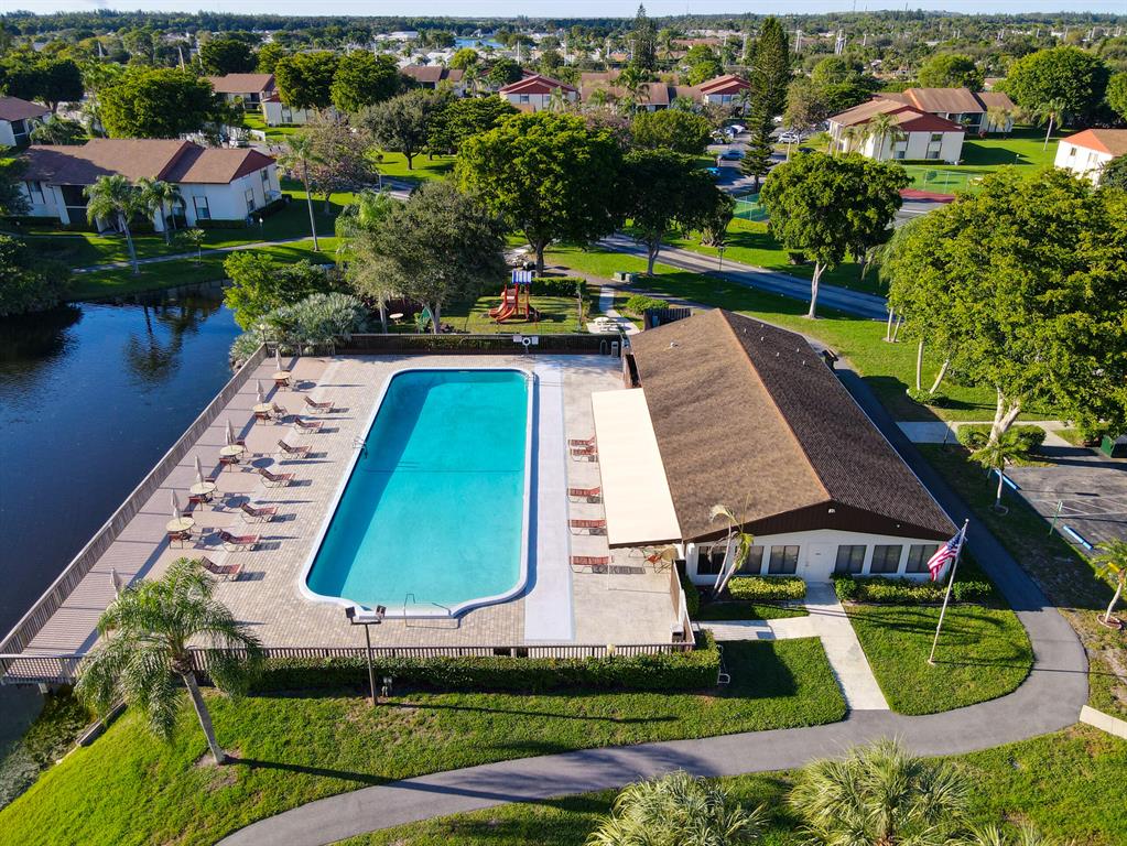 WELCOME HOME!! Rarely available and highly sought after one story 1,370 SQ FT Lakeview Villa featuring 2bed/2bath with enclosed glass lanai which could be a flex room for added space. Unit features Eat In Kitchen, Living/Dining Area, Vaulted Ceilings, 9Ft Master Walk-In Closet, Aqua Guard Water Resistant Wood Based Laminate Flooring in bedrooms, Whirlpool Appliances, Rheem 2 Ton A/C replaced in 2022 and Full Size Capacity Stainless Steel Washer and Dryer and much more. Community offers Pool, Clubhouse , Walking Trail, Racquet Ball, Tennis Courts, Children's Play Area and Bocce Ball Courts. Conveniently located near PBI Airport, I-95, Turnpike, Ball Park of the Palm Beaches, Rosemary Square, Beaches, Restaurants and so much more. Don't Let this Opportunity slip away. Call today!