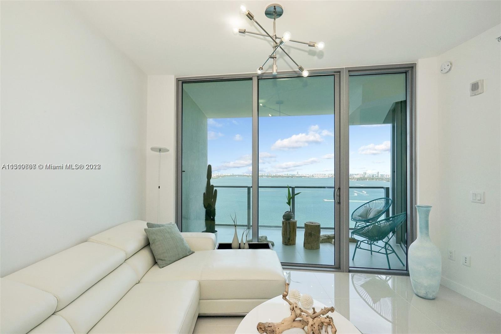 Furnished direct bay view in a luxurious building in Miami’s first man-made beach club directly on the waters of Biscayne Bay with a private beach. Amazing furnished unit 2/2 with a stunning panoramic view of Biscayne Bay and breathtaking views of the Miami Skyline & beautiful sunsets. Adjacent to the popular Design District, Wynwood Arts District, Midtown and Downtown Miami neighborhoods, 10 minutes to Miami Beach. Top of the line appliances, floor to ceiling windows, unit has a private elevator entry. Building lobby level has High-end restaurant, beauty salon, art gallery, business center.
