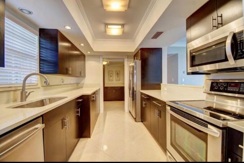 Stunning Beachside Condo. Bright and spacious 2/2 that has a huge bonus storage area by carport), 9ft ceilings and over 1500 Sq ft. Gourmet Kitchen made for entertaining. Quartz counter tops, Custom cabinets, High gloss Porcelain tiled floors. Bathrooms are elegantly appointed with Grohe faucets enhanced with Marble Tile. High Impact Windows & Doors just add to the incredible value in this unit. Located in the highly sought-after location of Spanish River Land, within walking distance to the Boca Hotel, Downtown Boca and a few steps to the Deeded & private Sandy Beach.ESA Animals with paperwork. Building is set for 40 year concrete restoration, seller paying all.