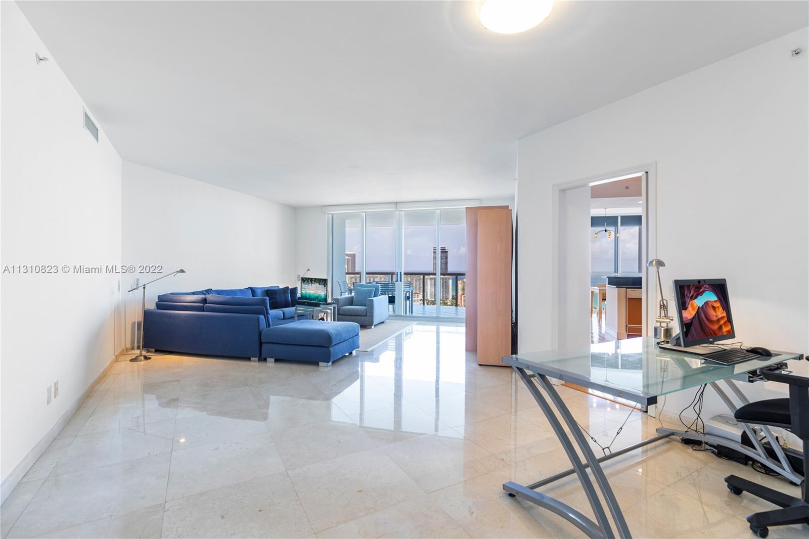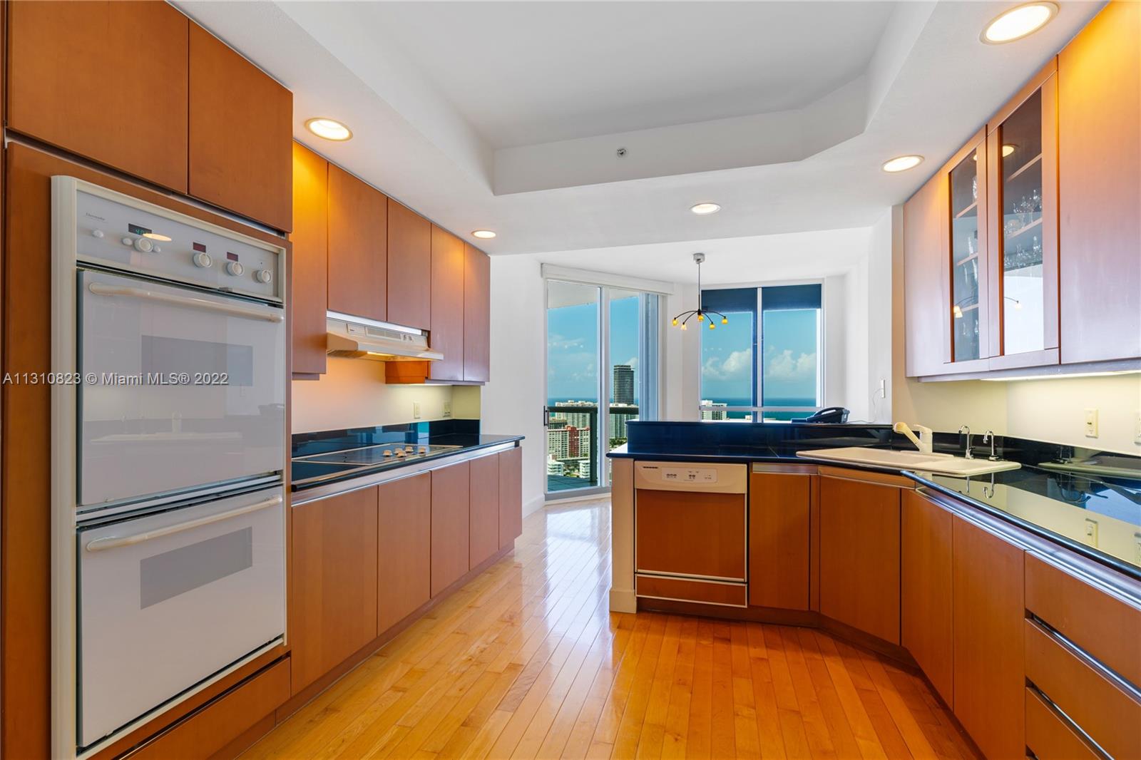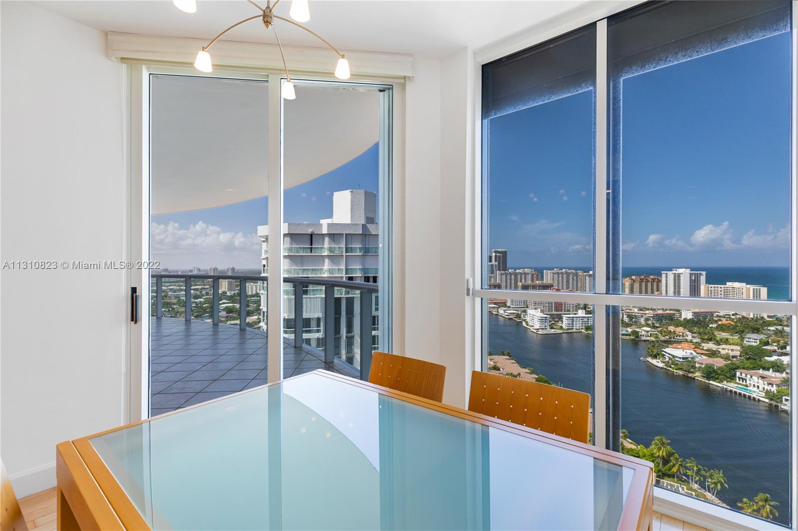 Pristine Lower Penthouse residence with captivating intracoastal and ocean views. This sun-filled condo features ultra high ceilings, a private elevator, hardwood and marble floors, modern kitchen with breakfast nook overlooking the water, floor-to-ceiling high impact windows with accordion shutters, oversized open balconies, and a grand master suite with spa bathroom. Residents enjoy lavish building amenities, including fitness facilities & full spa, waterfront pools, on-site cafe, 4 clay tennis courts, social lounge, library, card room, and playroom & gaming center.