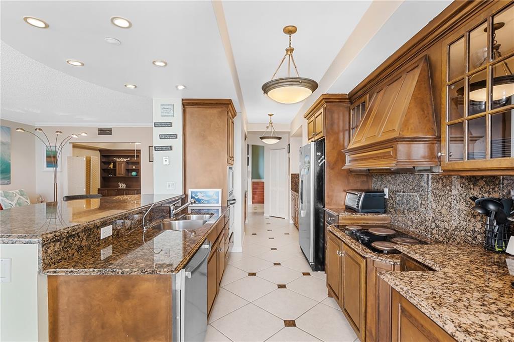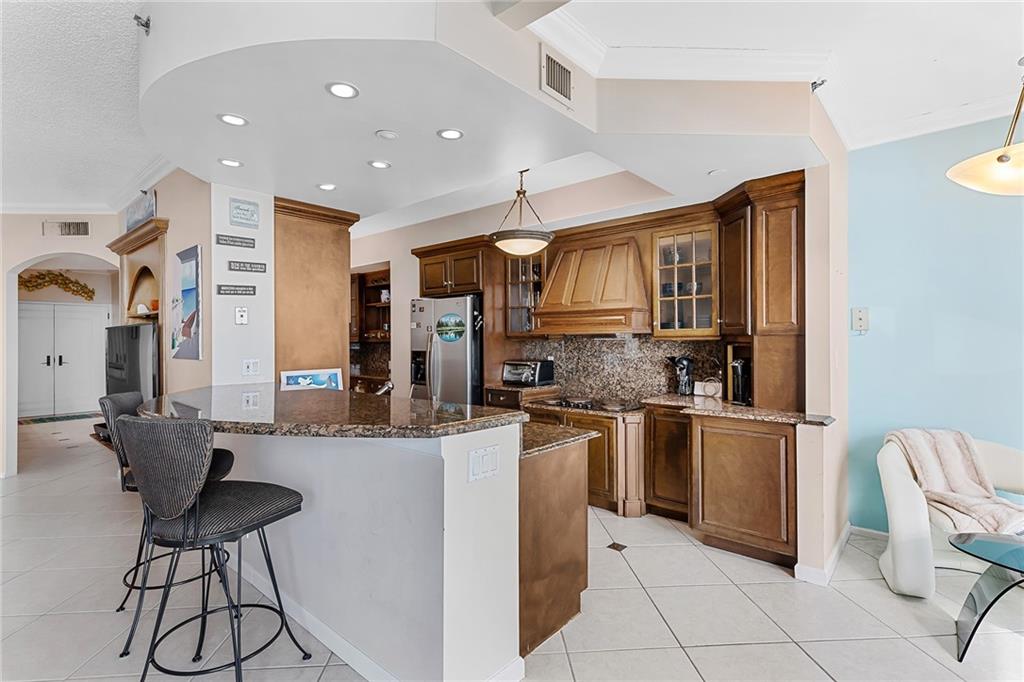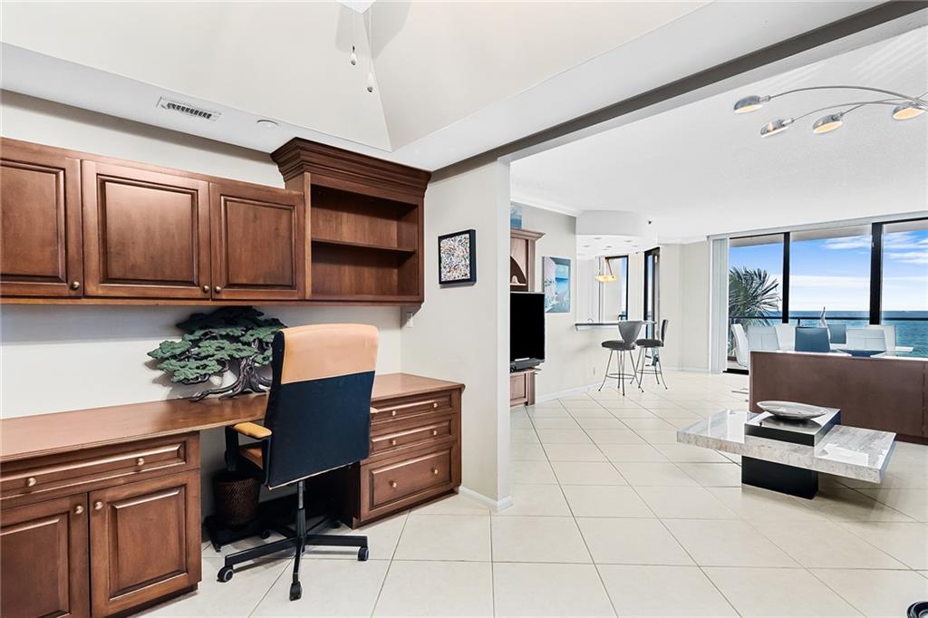 Total concrete & balconies restoration completed. Direct East ocean & sunrise views! This 2 Bed/2.5 two-level unit offers a private balcony on each floor. Stunning kitchen with custom cabinets, granite tops, pantry & stainless steel appliances. Open eating area from kitchen with granite tops opens to the living area and offers a beautiful ocean view while eating and/or entertaining. Den or office has a mahogany wall unit built in. Master bath hideaway includes a whirlpool tub and separate shower. Spacious closets and storage throughout. Utility room has a full sized washer, dryer and utility sink. Underground assigned parking. Small pets ok. Unit fully fire sprinkled. Building renovation/certification almost complete and all special assessment paid by Seller. Elevators redone recently.