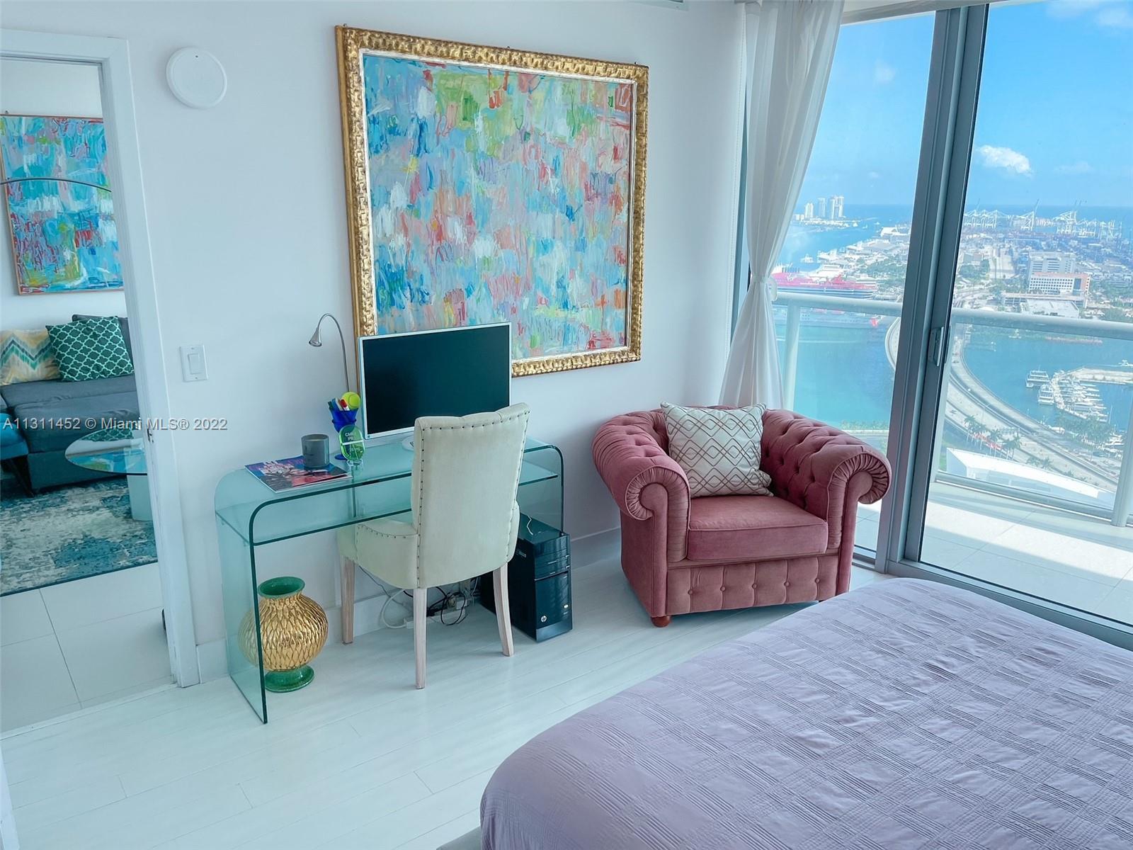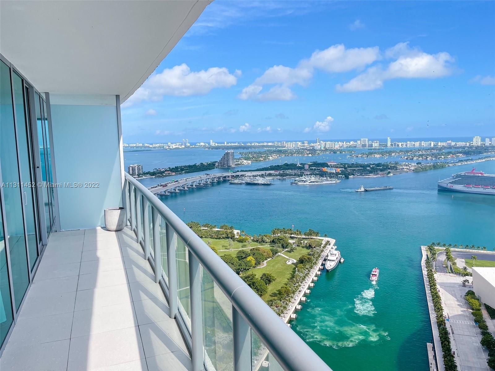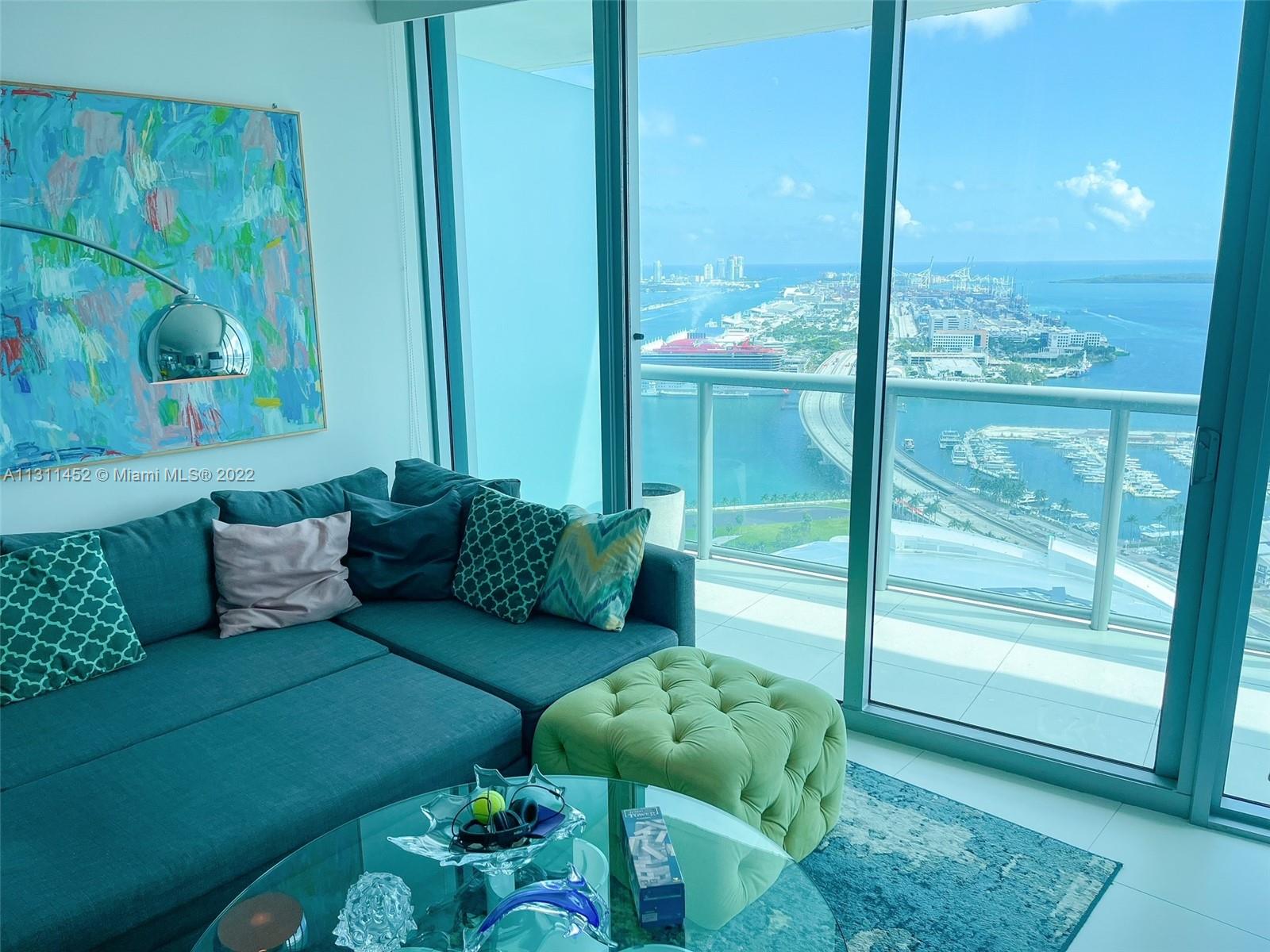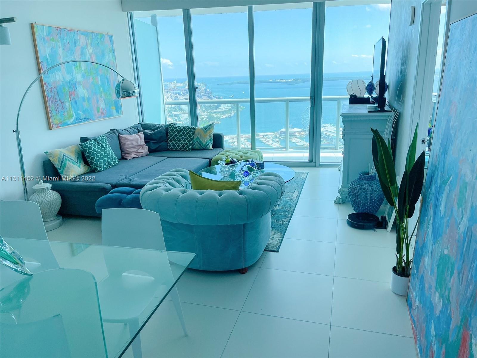 Welcome home to breathtaking unobstructed views of the bay, ocean & city skyline. This is a bright & spacious condo on the 42th floor with one of a kind features such as Venetian plaster, built-in master closet, ceramic tile floors and imported Italian furniture pieces from Murano & Florence. Step outside to enjoy the large balcony with picturesque ocean views that you can access from both the living & bedroom. The building is centrally located, a quick drive to the beach & airport, and it's fully equipped with 24/7 security, front desk, 2 pools sunrise & sunset, jacuzzi, volleyball court, BBQ, full floor Gym & more. This turn-key apartment comes with 1 private parking spot, 1 storage area. New restaurants & shops being built right behind the building, everything within walking distance.