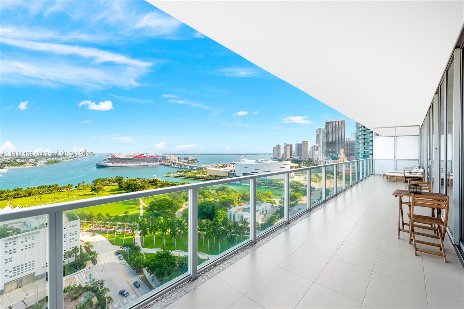 One-of-a-kind 3 bed, 3.5 bath unit at the Marquis in Downtown Miami w/ panoramic views of the bay. The only floor plan of its kind in the entire building, featuring 2,400 SF. Two private elevators take you directly inside your unit. Features an open floor plan with 10’ ceilings, floor to ceiling impact glass & porcelain floors. Exquisite upgrades: Crestron Audio & lighting, linear diffusers, custom built-in bar, cove ceiling w/ fiberoptic lighting & a hidden projector in living room. Two master suites w/ frameless glass enclosed shower, dual sinks & walk in closets. Enjoy countless amenities, spa, fitness center, pools, 24-hr concierge/valet and services by the Gabriel Hotel. Minutes to the Arena, Arsht Center, PAMM, Frost Museum. Close to Wynwood, Design District, Brickell & South Beach.
