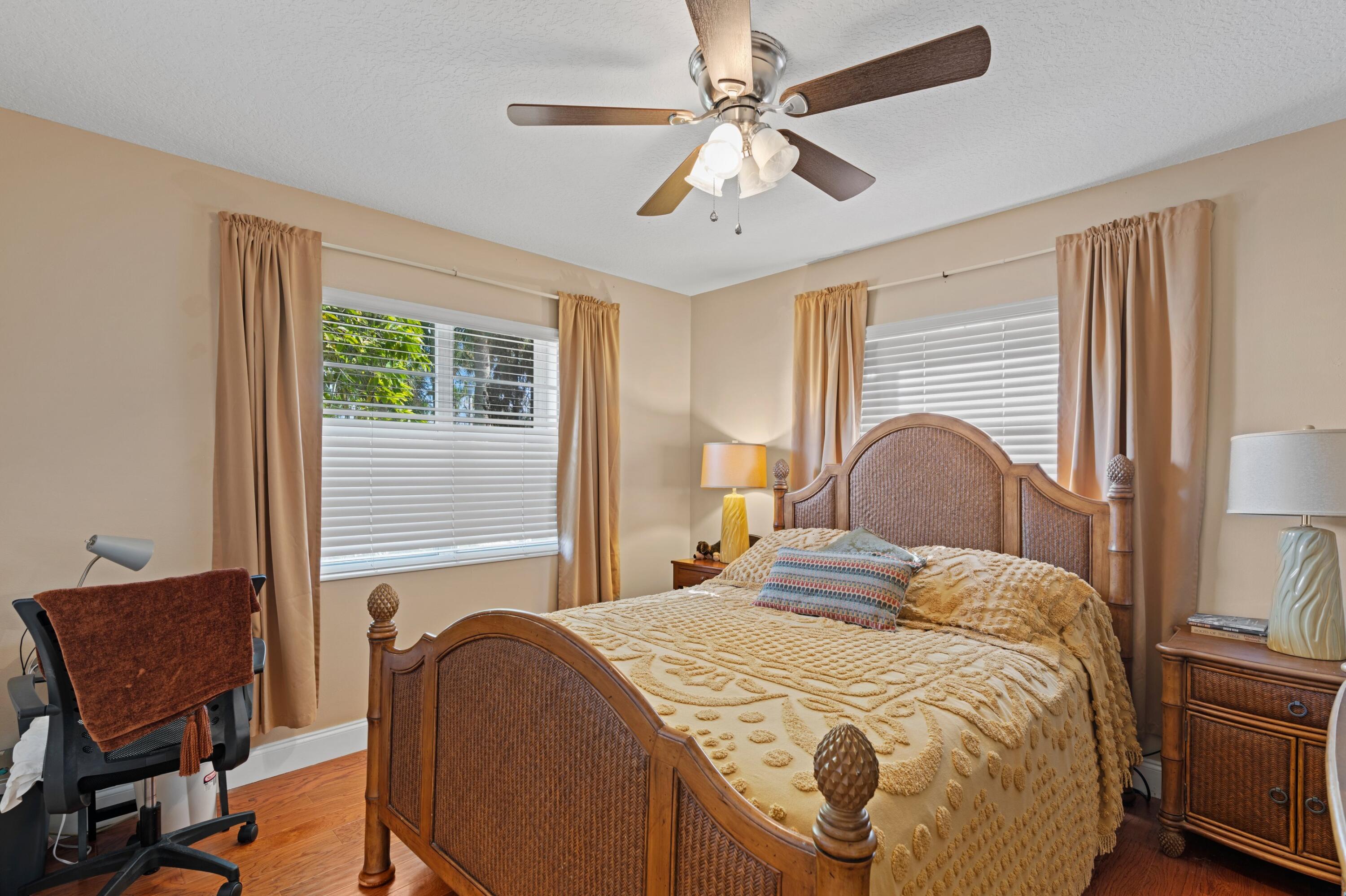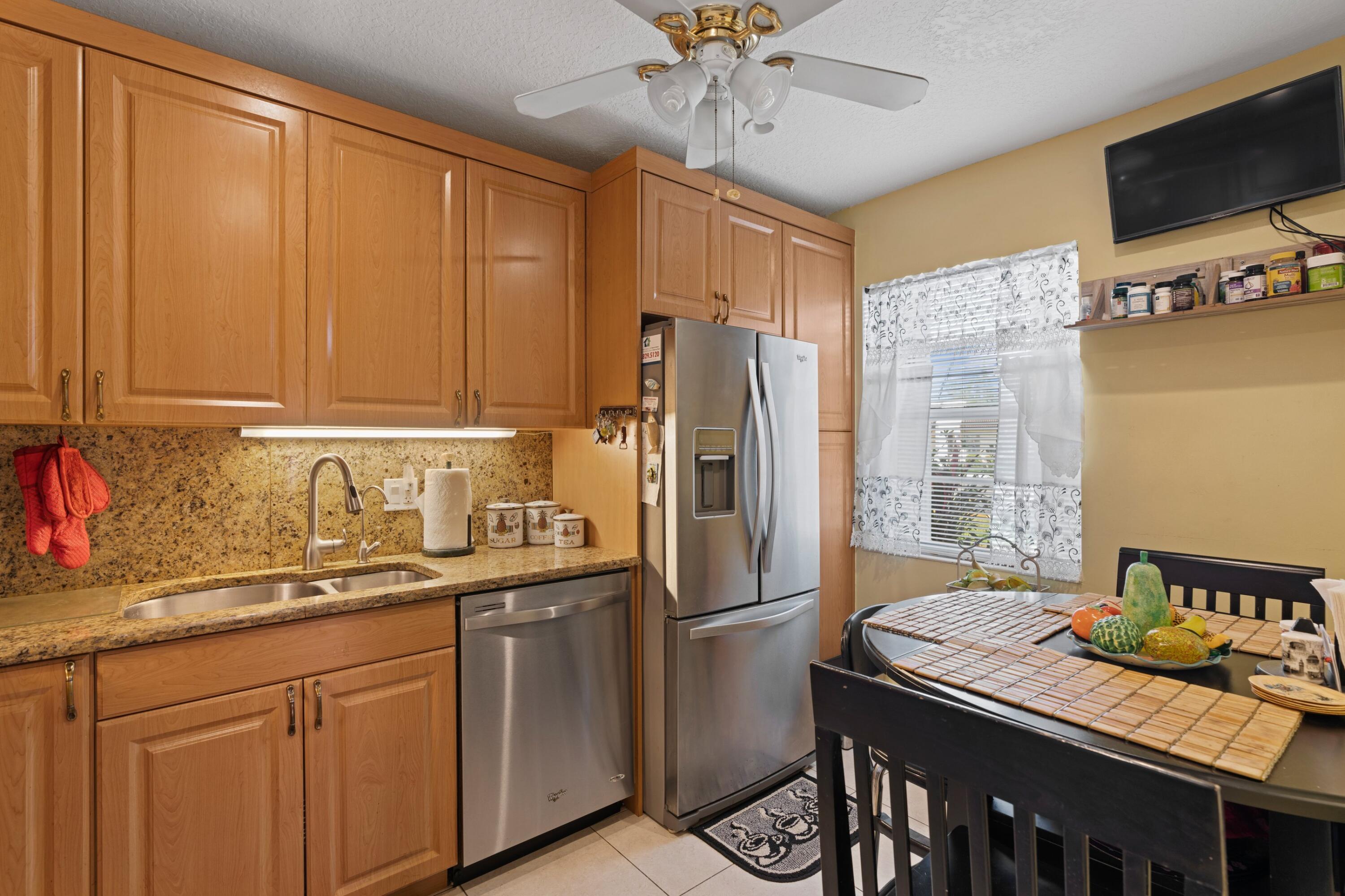 This Beautiful Waterfront 2 bedroom 2 bath + den Corner Villa is located in Golden Lakes an Active 55+ Gated Community in West Palm Beach. The Eat in Kitchen has been updated with Granite Counter tops & Backsplash, Stainless Steel Appliances & a Pantry too. The Master Bedroom has an en suite bathroom with a Tub/Shower combo w/glass doors & a Large Closet with Built in shelving. The Second bath has a tiled shower w/glass doors. There is a Den/Family room with windows Overlooking the Water, Laundry room w/storage, Neutral tile in the main area's, Wood engineered flooring in the bedrooms, Hurricane Accordian shutters, Front entry screened porch, linen closet and a backyard with many lovely exotic plants for your enjoyment.