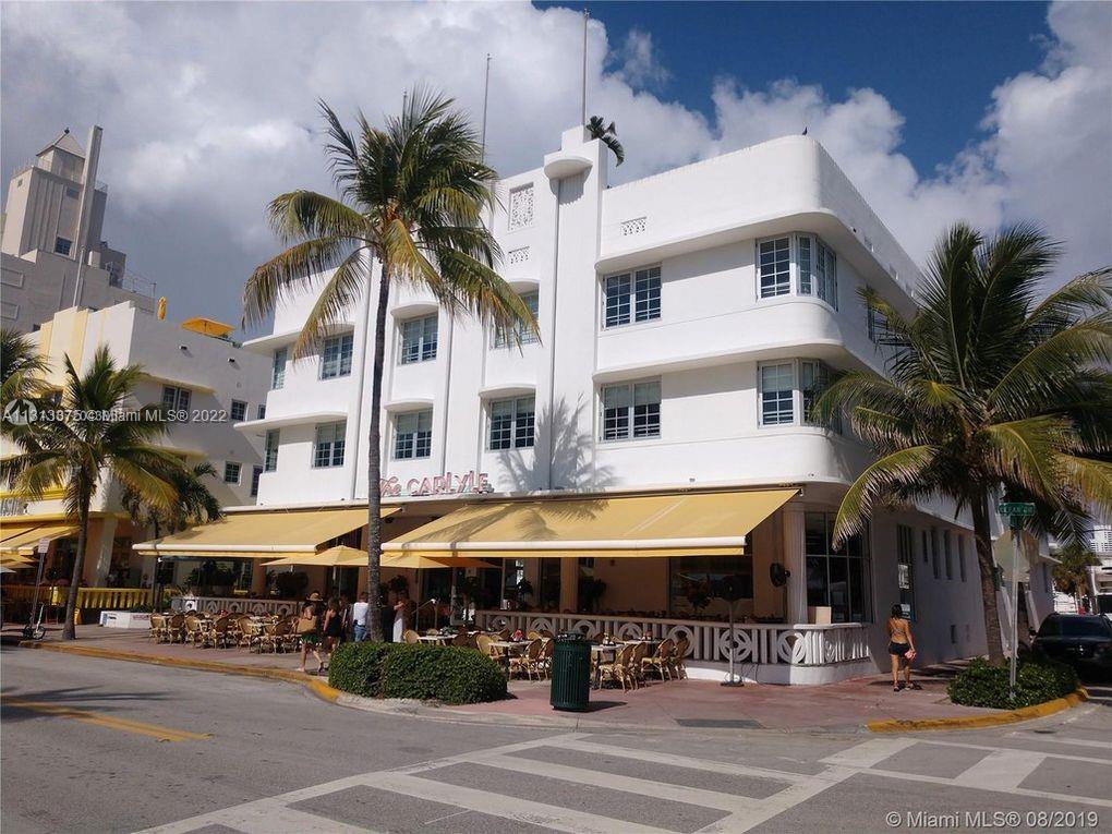 The beautiful one-bedroom is located at the Historic Art Deco Carlyle Hotel, where units rarely come up for sale. This unit is in the Northwest corner of the building with a lot of natural light and partial views of the ocean also. This is as well a beautifully furnished unit (furniture included) with a washer and dryer too. Located on the world-famous Ocean Drive and directly across the street from the beach. On-site Valet or nearby public parking, Lobby Bar/Restaurant & Ice Cream café, and Onsite 24-hour Concierge and Security. This is the perfect investment Airbnb property, allowing daily and short-term rentals, in an authorized area by the city (which is rare in Miami Beach) and HOA. (ADDITIONAL PHOTOS OF THE UNIT ARE COMING SOON)
