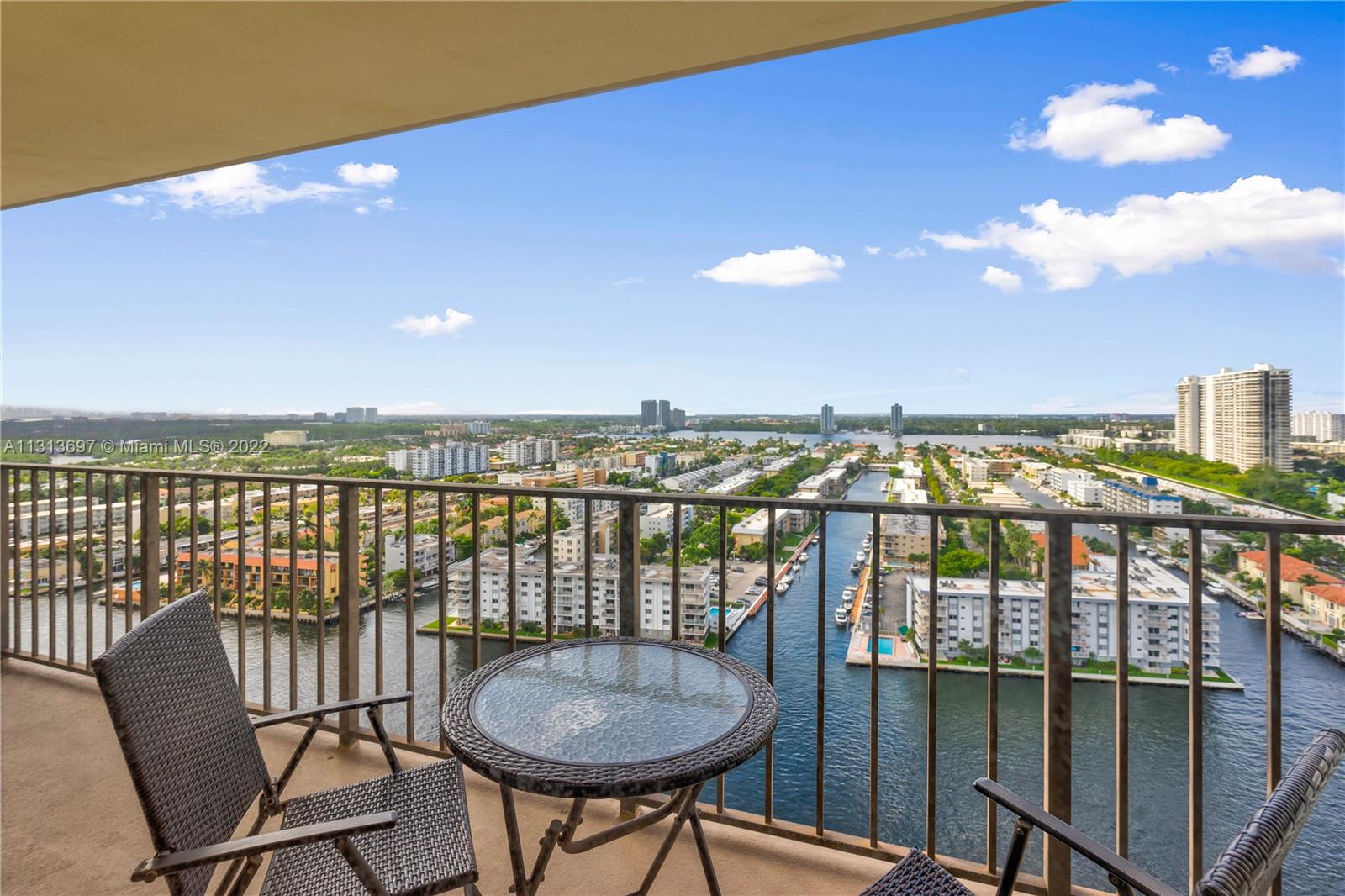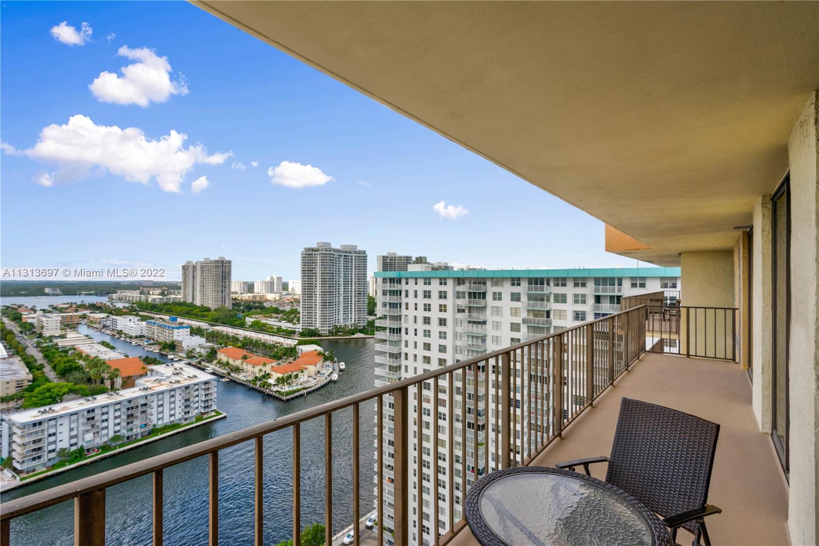 Splendid!!! Totally redone waterfront top floor with dazzling views overlooking the bay, canals, Oleta park and a glimpse of the downtown skyline. This stylish residence features porcelain flooring, crown molding, halogen lighting, totally remodeled kitchen and bathrooms, oversize balcony, 2 yr old AC with smart thermostat and full size washer & dryer. Unit comes tastefully furnished and equipped. Winston 700 allows renting 1st year and min 90 days. The building is under renovation…currently being painted, new pool deck & landscaping. Great location at a walking distance to the beach, A school, restaurants and groceries. Easy to show.