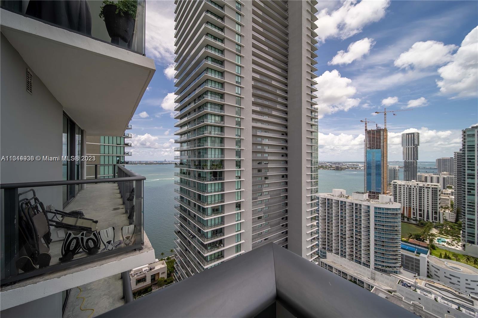Breathtaking water and city view from the 32nd floor. Investors dream or perfect for owner to occupy. Close to restaurants, shopping, art and entertainment . This unit features one very spacious master bedroom, one open den , one and a half bathrooms, open kitchen with state of line Bosh appliances, ceramic and carpet floors, and an abundance of natural light. Designed by Karim Rashid, Paraiso offers amenities such as a rooftop pool with gorgeous panoramic views of the bay and city, rooftop pool a the 46th floor, a second heated pool in the 5th floor, tennis courts, fitness center with a spa, game and children's room, clubhouse, Beach Club access, and a chic restaurant on site. Valet and concierge services. Can be rented 12 times a year, once montly.