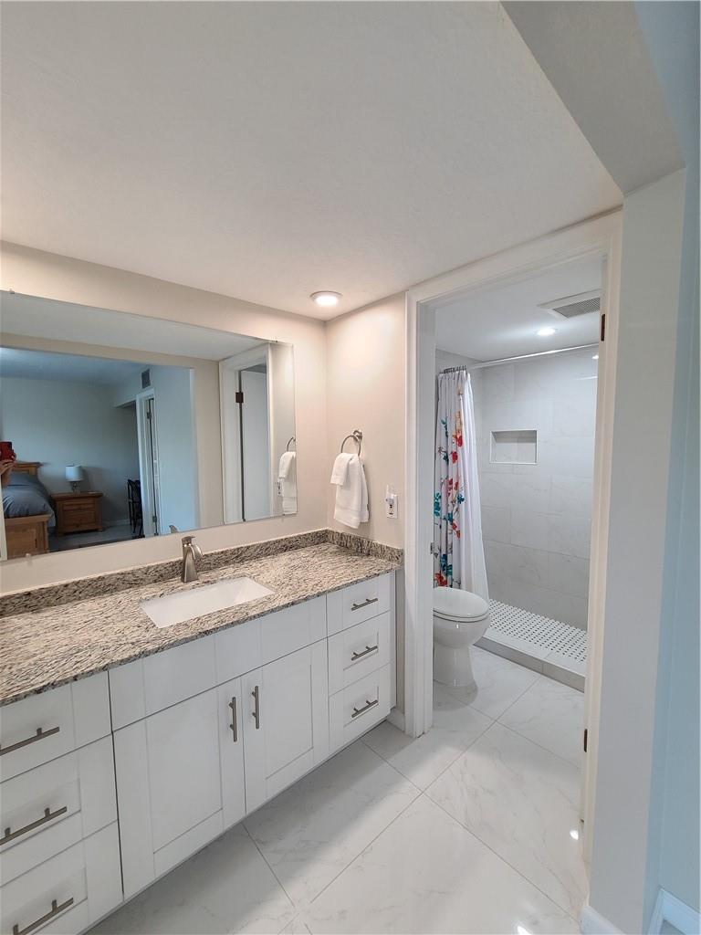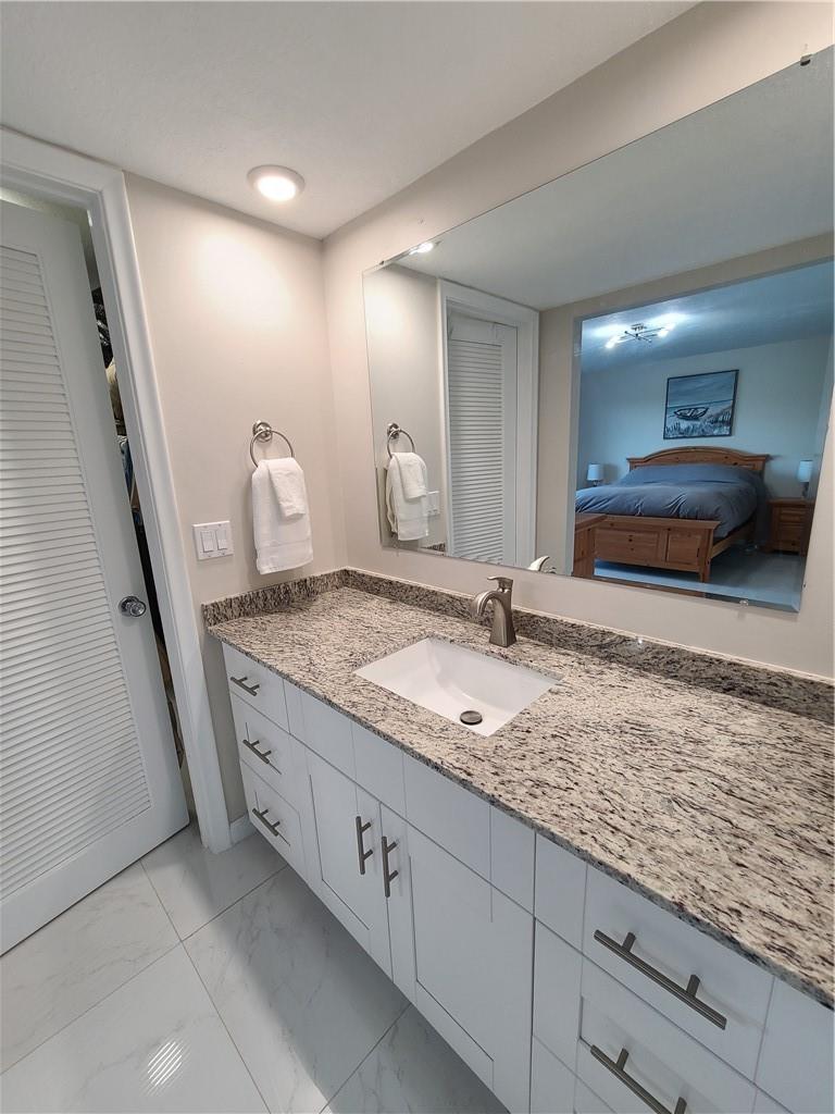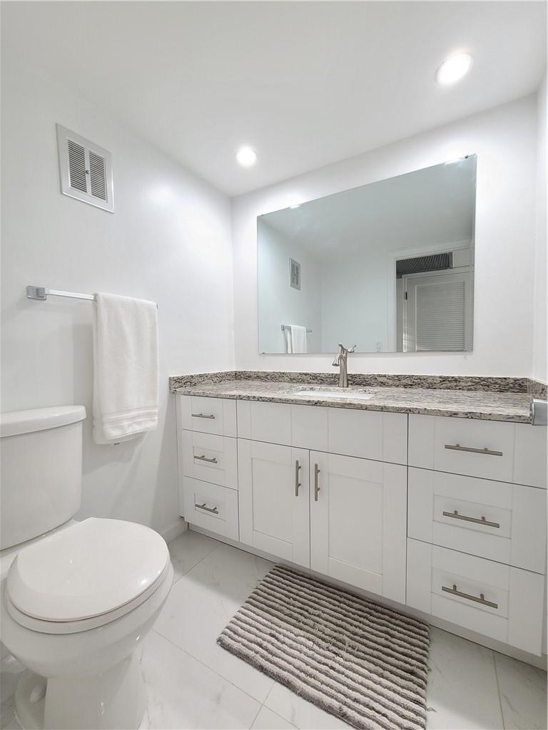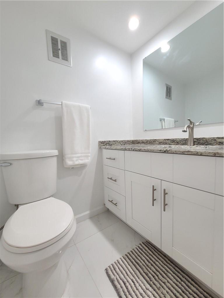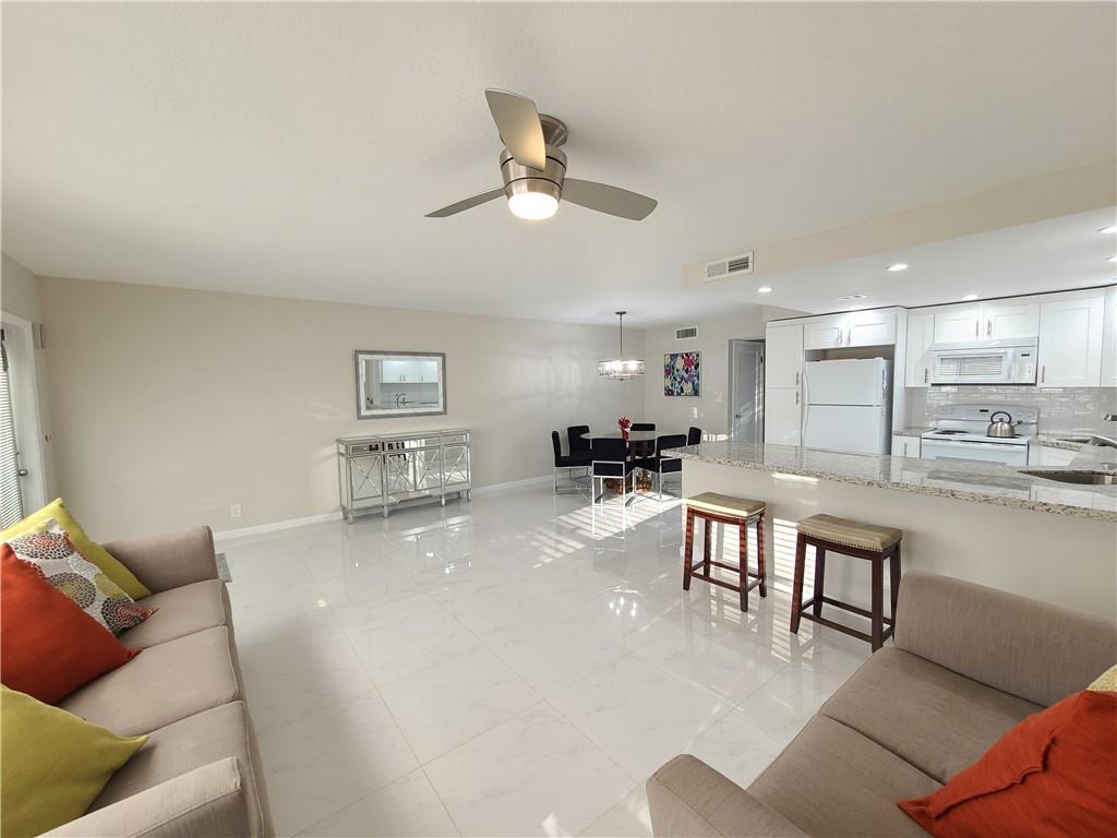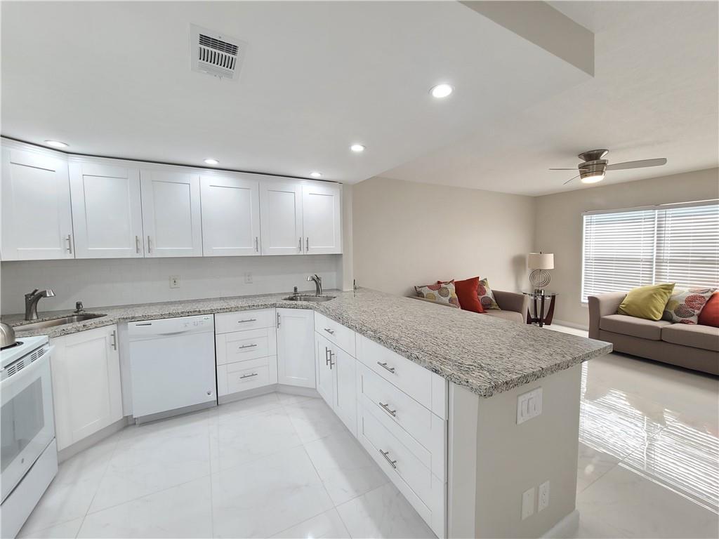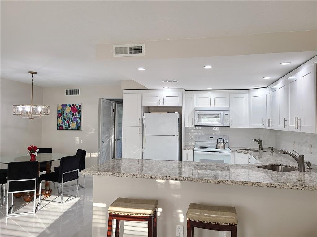 TOP OF THE LINE ALL THE WAY!! COMPLETELY UPDATED SPACIOUS 842 FEET 1 BEDROOM, 1.5 BATHS 4TH FLOOR CONDO. OPEN MODERN KITCHEN. GRANITE COUNTER TOP. LOTS OF COUNTER SPACE. DOUBLE SINK. WHITE CABINETS WITH SELF CLOSED DRAWERS & PANTRY. TILE BACKSPLASH. PORCELAINE TILE & LAMINATE FLOOR IN THE BEDROOM. 2 UPDATED BATHROOMS. SPACIOUS BEDROOM W/ WORKING AREA & OVERSIZE WALK-IN CLOSET. NEW MODERN FURNITURE. BUILDING LOCATED IN A QUIET REMOTE LAREA. ENJOY A RELAXING GARDEN VIEW FROM YOUR SCREENED PATIO WITH IMPACT SHUTTERS. BUILDING W/ RESERVE FUNDS. NEW ROOF. FRESHLY PAINTED. LOCATED STEPS TO A PRIVATE POOL & BBQ AREA ASSIGNED FOR BUILDINGS A.B.C IN GREENBRIER ONLY. SECURED BIKE STORAGE. WELCOME TO CENTURY VILLAGE W.P.B. 24/7 GATED ACTIVE 55+ COMMUNITY. MINUTES TO SHOPPING & RESTAURANTS. MUST SEE