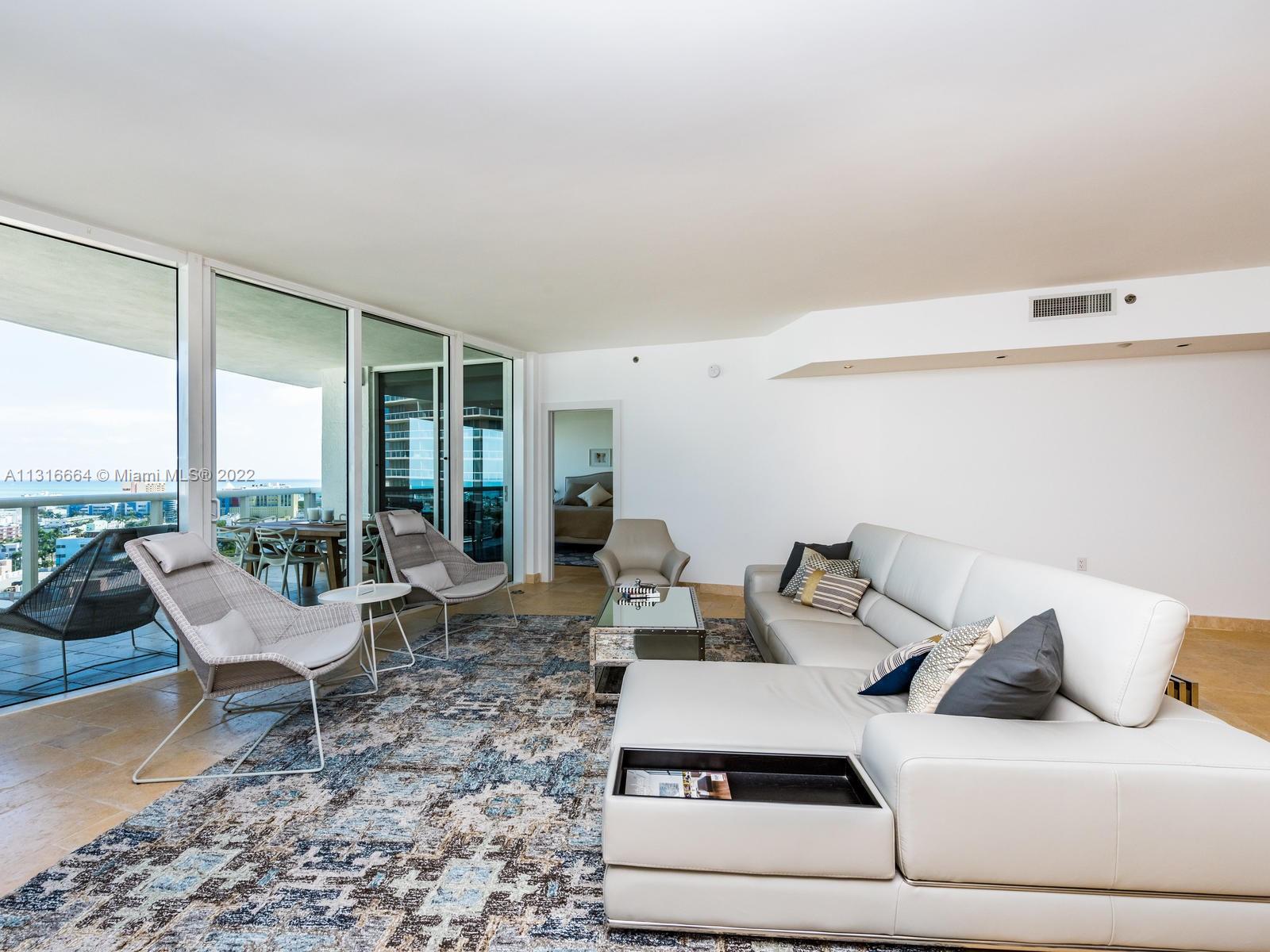 MURANO GRANDE LUXURY RESIDENCE at Miami/ South Beach. Enjoy 180 Degree Bay , Ocean & City Views from every room in the apartment! Floor to Ceiling Glass Window Huge 2 bedroom, 2/5 bathroom and 2 balconies has a dramatic view of the marina, downtown and Star Island. The large master bedroom has an impressive designer's touch with an open Jacuzzi. This South of Fifth building's amenities include Gym, Pool, Boat Dock & Marina Tennis court, restaurant and more.. Walk to the beach, restaurants shopping..