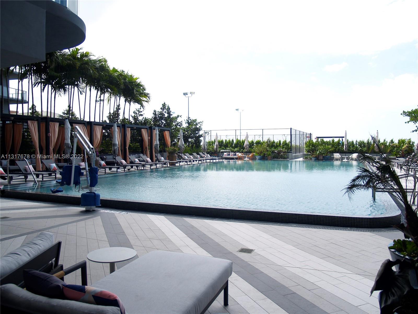 Beautiful corner unit view to the pool and tennis course, this 2 bed and 2bath has a lot to offer. Build in walking closet and blinds in every room. Cardio and weight training equipment and cardio machines with personal plasma television/music options. Free weights, stretching mats, Pilates balls, yoga mats. Ciel Spa featuring pampering treatments, massage beds with iPod docks, experience showers, and steam rooms. Media Room for exclusive private home theater happenings enhanced by catering and bar service from any of the neighboring restaurants.
