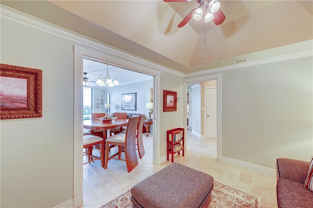 Updated two story townhome style unit in a redone boutique building on the beach. Great intracoastal views and views of Lake Santa Barbara. 2 bedroom 2.5 baths plus a den. Renovated chef’s kitchen, granite counters, stainless steel appliances, balconies of living room and bedrooms. Hurricane impact windows and doors throughout with garage parking. Beautiful master suite with great closet space and storage. Master bath has a separate tub and shower. Interior utility room with full size washer and dryer. All assessments paid and concrete restoration and balconies completed! Great amenities including building security, fitness center, library, extra storage, kitchen facilities. Small pets allowed. 20 pounds or less.