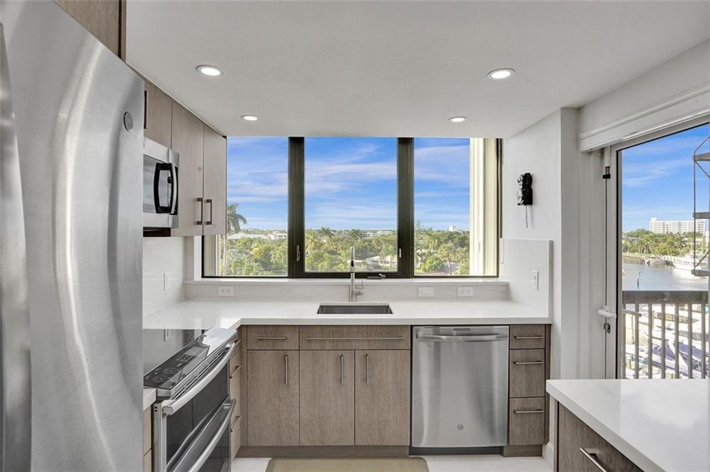 BEAUTIFUL CORNER UNIT WITH 2 BALCONIES. ONE BALCONY WITH VIEWS OF THE CANAL AND THE SECOND SMALL BALCONY WITH PARTIAL OCEAN VIEW. COMPLETELY REMODELED INCLUDING THE ELECTRICAL AND PLUMBING. NEW CUSTOM MADE CABINETS THROUGHOUT. OPEN KITCHEN. NEW TILE FLOORING ALL ROOMS. QUARTZ COUNTERTOPS IN KITCHEN. WASHER AND DRYER IN UNIT. HURRICANE GLASS WINDOWS AND DOORS. 2 ASSIGNED PARKING SPACES 1 THAT IS COVERED, PET WELCOME UNDER 25 LBS. BOUTIQUE BUILDING OFFERS A RESORT STYLE LIVING, POOL AREA WITH BBQ'S, TIKI HUTS & WHIRLPOOL SURROUNDED BY LUSH LANDSCAPE OVERLOOKING THE CANAL WHICH LEADS TO INTRACOASTAL AND LAKE SANTA BARBARA. PRIVATE OCEAN ACCESS.