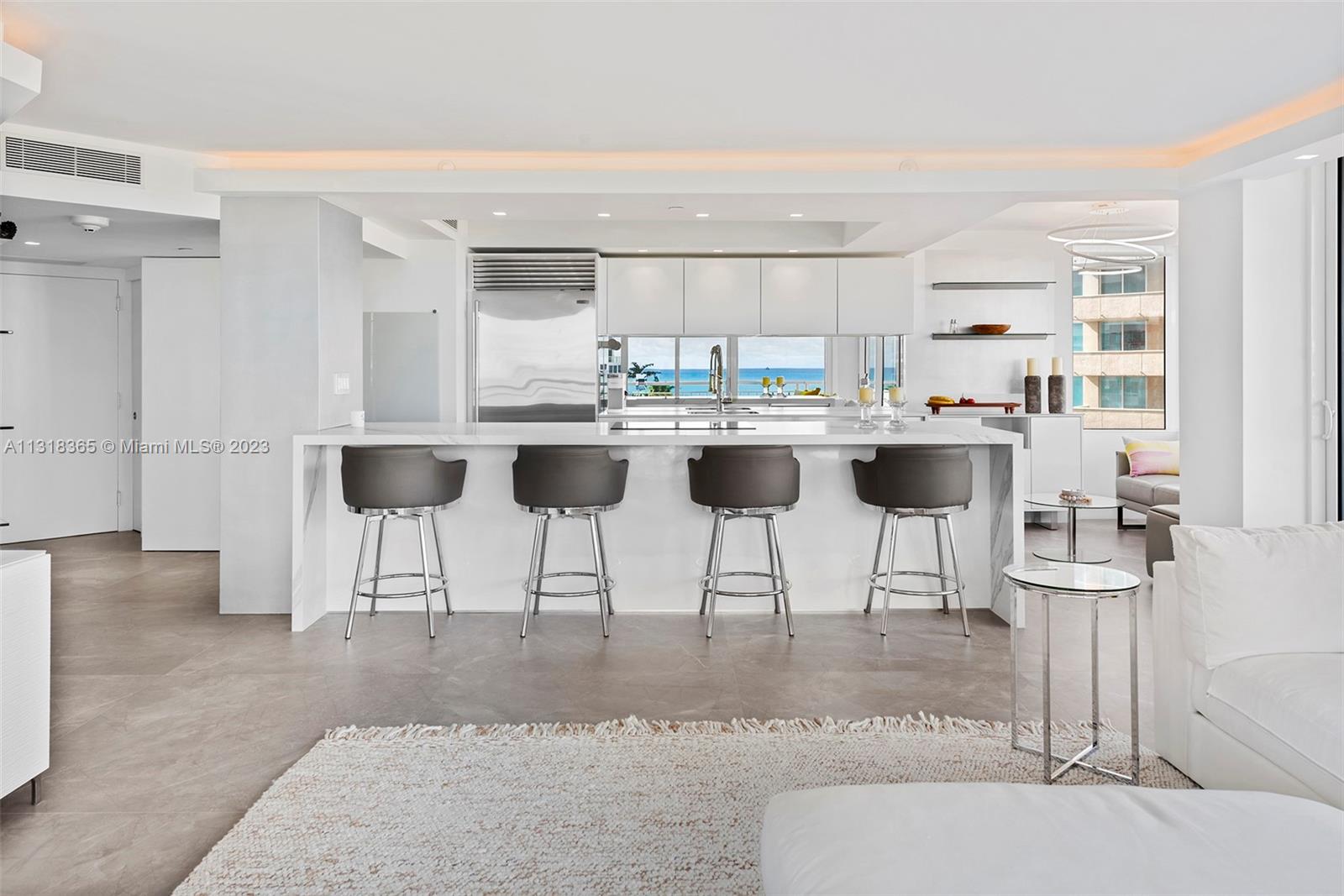 Dreamy direct east, corner, fully reconstructed residence, steps to the sand in the highly sought-after South of Fifth enclave. New minimalist design and maximized floorplan features Italian flooring, backlit LED soffits, new hurricane impact galss+doors, new A/C and custom-built closets. Open kitchen features large island, Wolf appliances, wine vault and charming breakfast-knook with views to Fisher Island. Enjoy daily panoramic sunrises over the Atlantic Ocean from a wonderful wraparound terrace. Having the most competitive price point for a 3bedroom in the tower, this makes for an opportunistic investment, vacation home, or year-round residence. South Pointe Tower is in final stages of major renovation including newly opened pool/deck, new tennis courts and new opened fitness center.