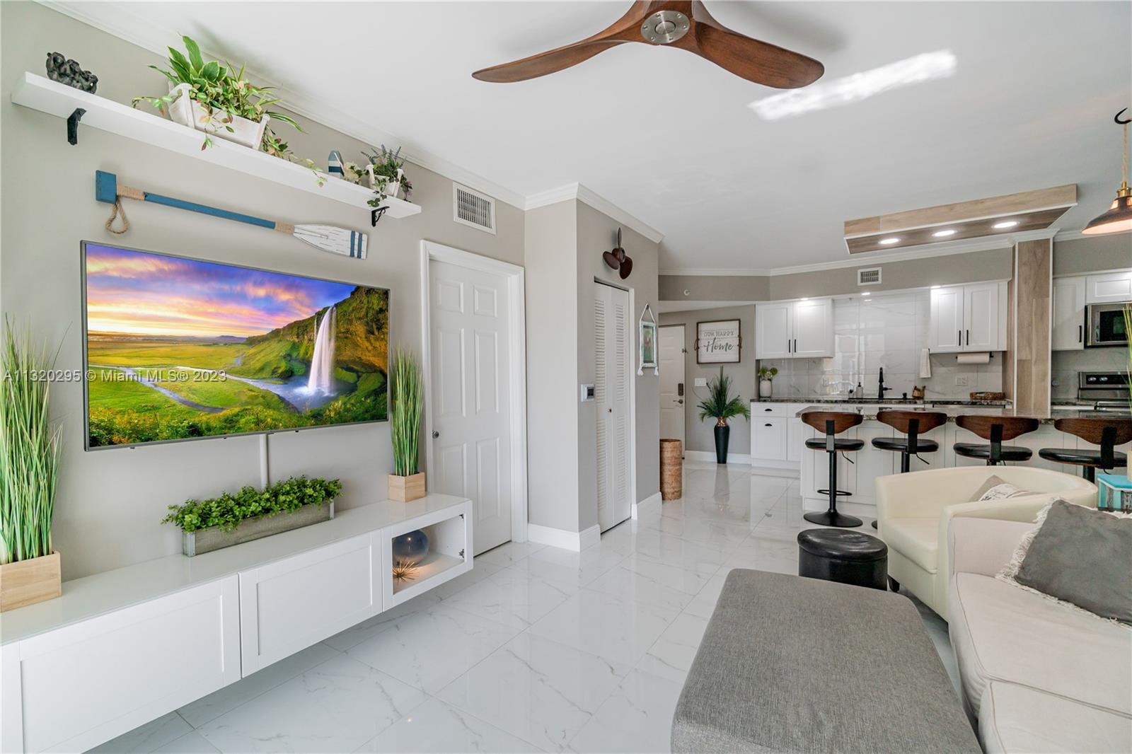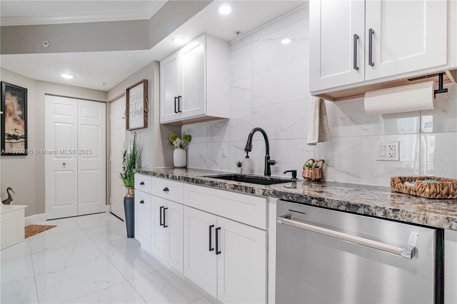 Fresh beginning! Picture yourself living in this 2/2 beautiful condo truly made for vacation or everyday living, with fabulous partial views of the Intracoastal. The heart of this condo is the swanky chef’s kitchen with a reconfigured layout to create more open and workable area with stainless steel appliances, plenty of cabinets, and a roomy pantry. White and Bright tiles throughout the unit to the balcony. Dryer and Washer in Unit. 2020 Water heater, 2021 Upgraded electrical panel. Location, Location, Excellent schools, Close to shops and restaurants, Walking distance to the beach. 1 assigned parking space on the same floor of the unit. The unit can be rented right after closing min 6+1 months, No Airbnb. Ready for new owners. Welcome home!