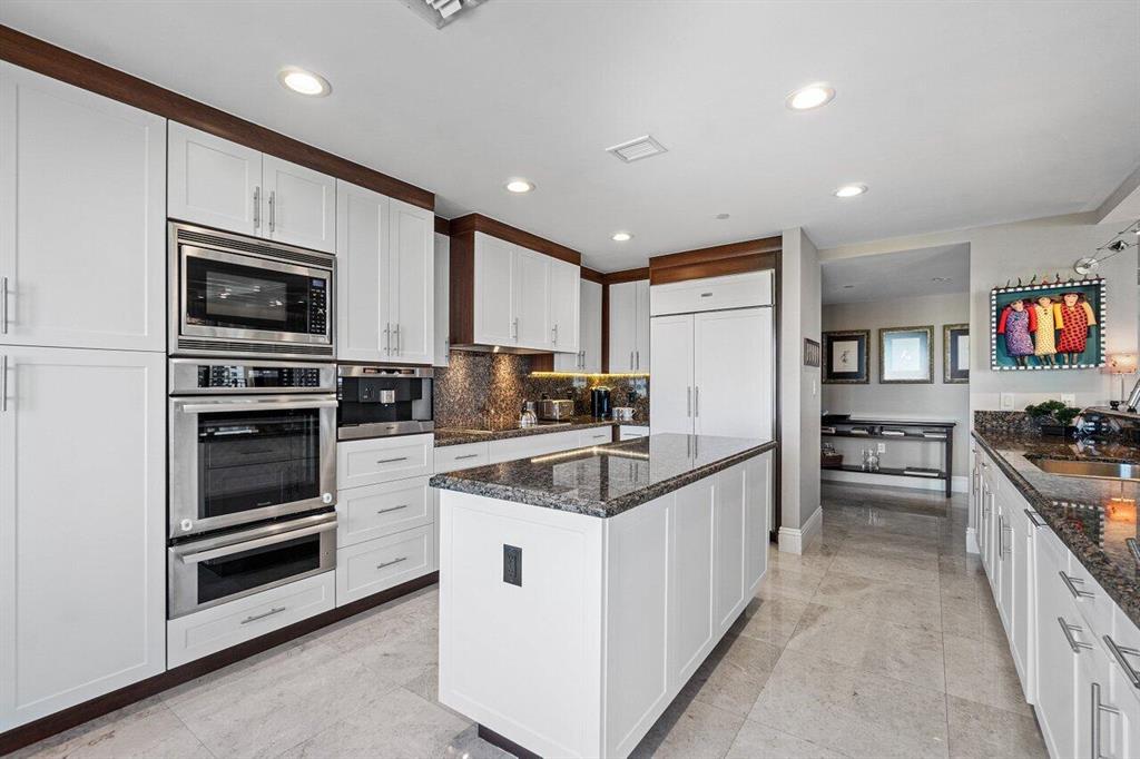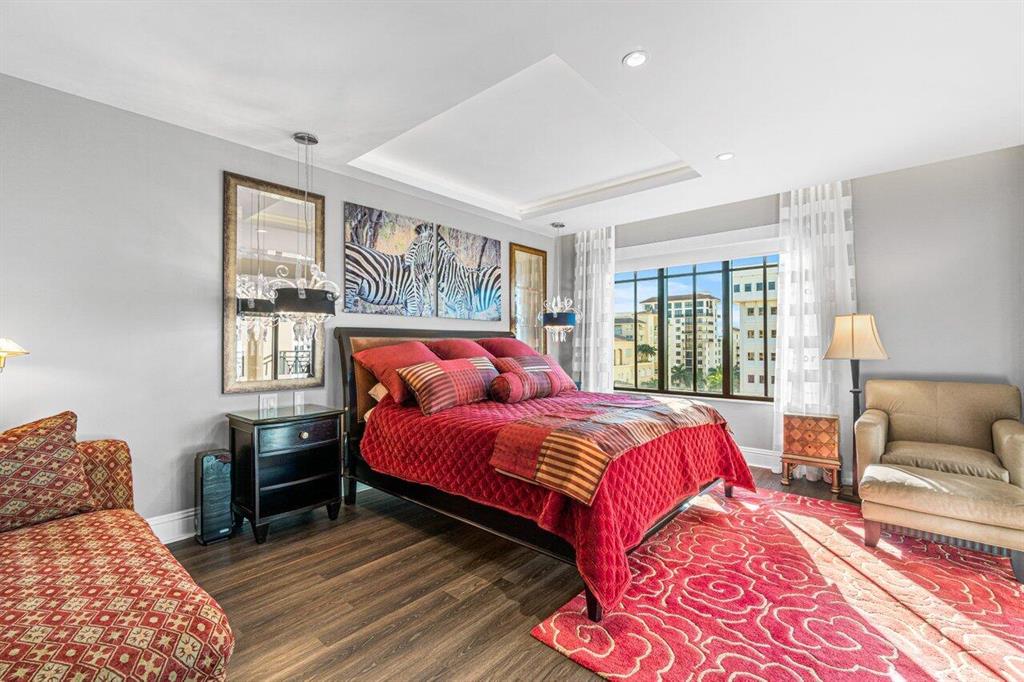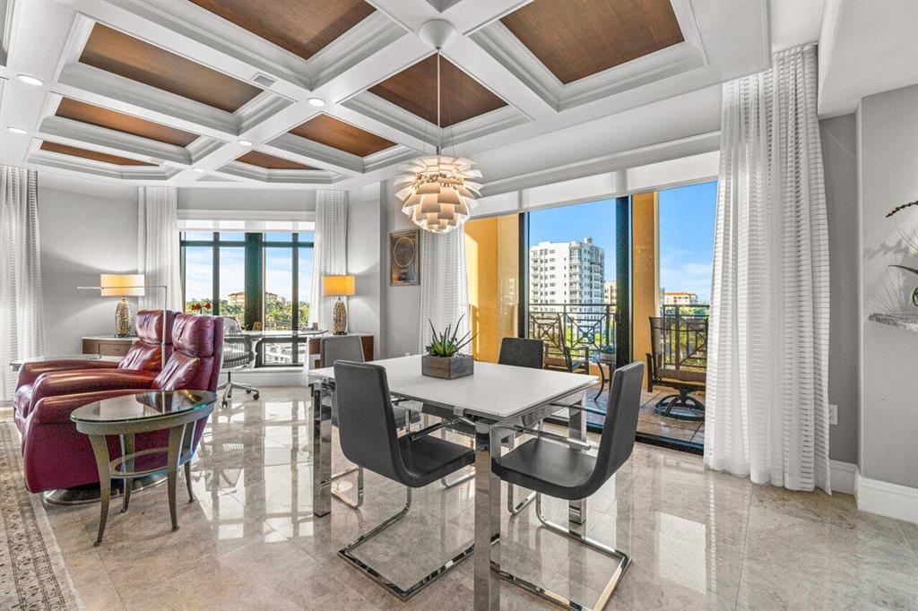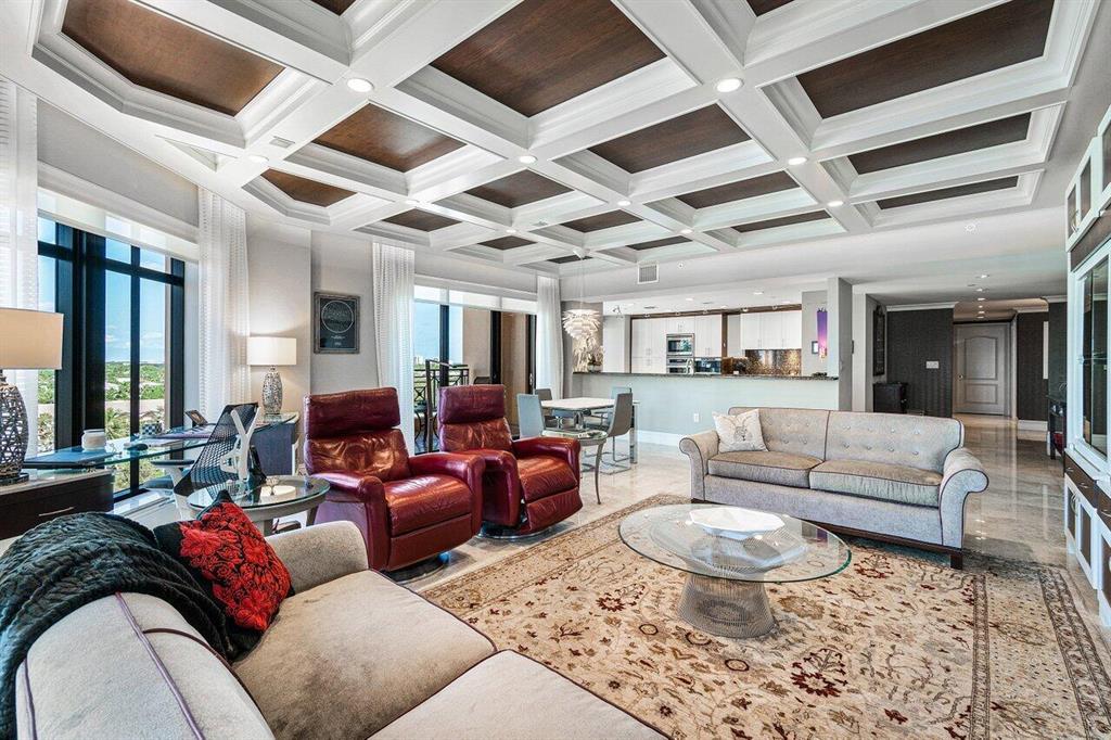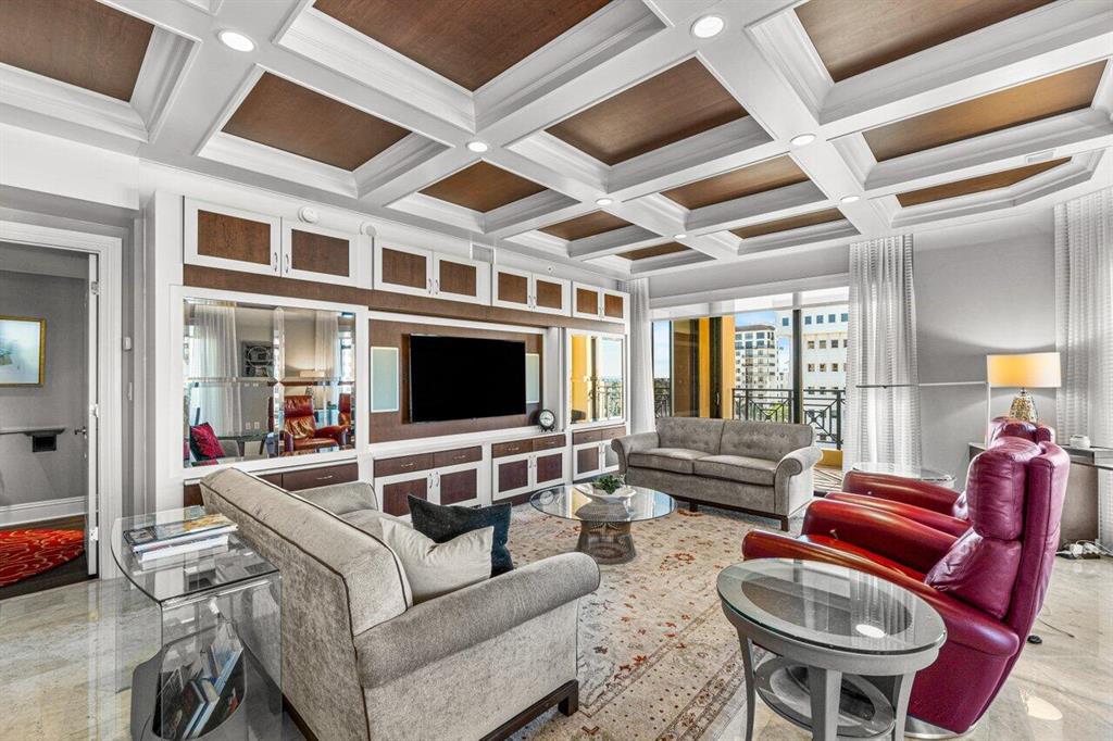 Architect's personal residence, substantially upgraded and decorated; can be offered finely furnished and fully turnkey. Elegance awaits in this spacious corner 3 bed 3 1/2 bath condo in the heart of Downtown Boca Raton. As you enter through the double front doors and pass through the private foyer adorned in silk wall coverings, you are greeted with abundant natural light. Floor to ceiling impact windows lead to 3 spacious covered balconies, totaling 300 sq ft. Meticulously crafted, the home features coffered ceilings, custom cabinetry and draperies, hard surface flooring throughout, stainless steel Thermador Appliances, paneled refrigerator, Miele in-wall coffee machine and granite countertops.The primary suite has two walk-in closets and bathroom en-suite, with double vanity, whirlpool