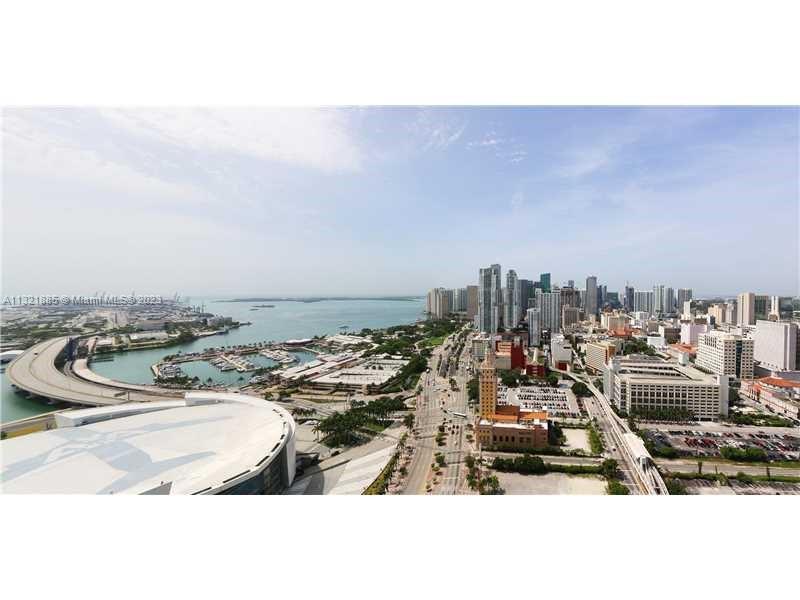 Beautiful 2/2 apartment at the 38th floor. Spectacular views of Biscayne Bay, Key Biscayne and downtown Miami. Tiles floor, W/D in the unit, very spacious and bright. 1 parking space, storage cage and cable tv. Located in the heart of downtown Miami directly across from the Arena and few steps from Bayside. 5-star building with excellent amenities including 2 swimming pools, fitness center, sand volley ball court, putting green, etc.