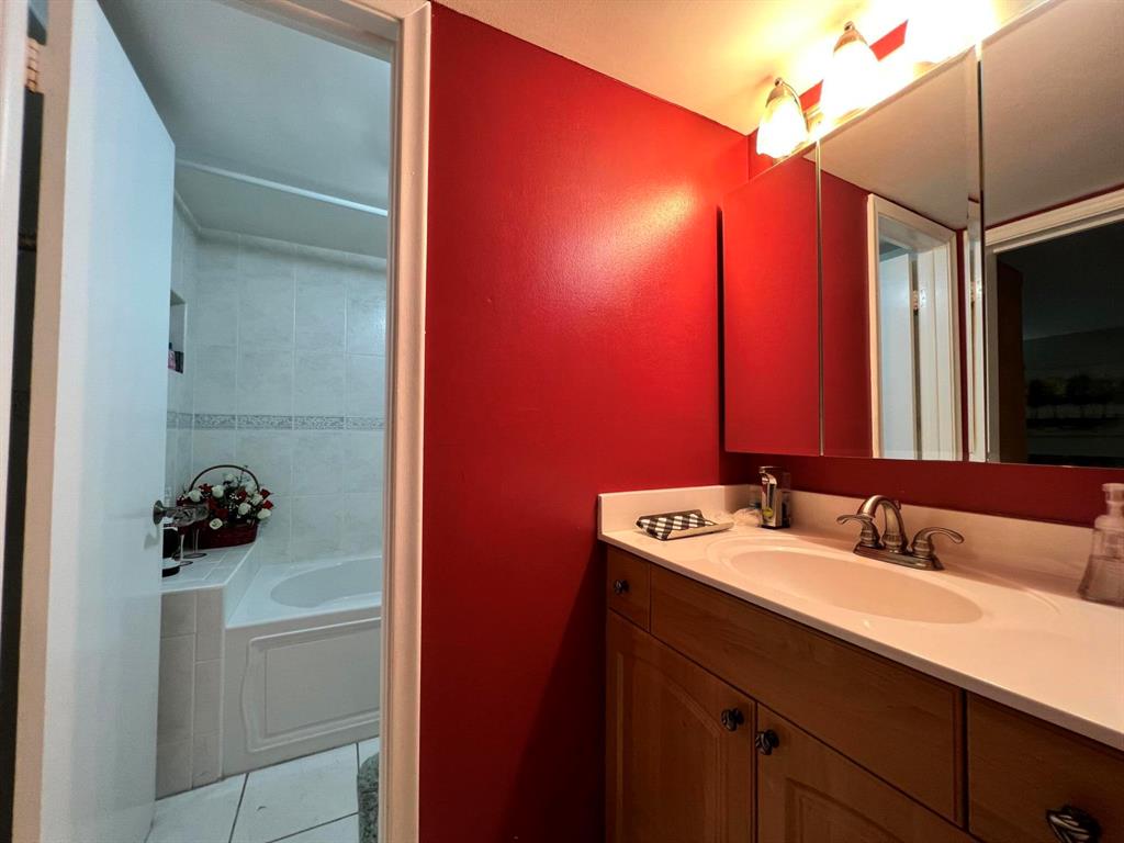 WOW!!! Gorgeous FIRST FLOOR 2/2 in the Stratford section of 55+ Century Village. Beautifully updated throughout. Kitchen updated with white cabinets, neutral tile flooring, and newer stainless appliances (side by side refrigerator, dishwasher, smooth top range, and built-in microwave). Bathrooms have been completely updated - one with a step-in shower and the other with a spa tub! Enclosed lanai offers extra space for an office/guest/hobby room. Spacious bedroom suite with updated full ensuite bath. In unit washer & dryer. Neutral tile flooring throughout. Newer central ac. Hurricane protection (some windows are impact and others have accordion shutters). Resident patio with sweeping water views. Sold AS IS and partially furnished. Century Village is a 55+ community with so much to offer..