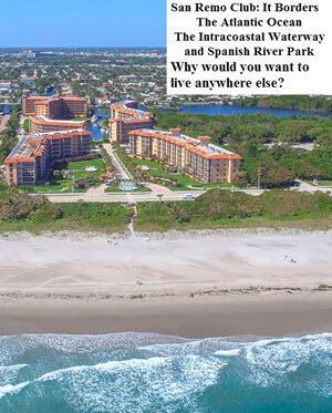 Turn the key and walk into your condo bordered on the east by the Atlantic Ocean, on the west by the Intracoastal Waterway and on the north by Spanish River Park. Whether you enjoy biking, hiking, swimming or relaxing by the ocean or the pool... or socializing in the newly remodeled clubhouse, or just enjoying the restaurants and entertainments of Boca Raton, whatever you want is literally at your doorstep in beautiful San Remo. Come see! Come buy! Come live the life! Full hurricane protection, assigned parking spot in garage.