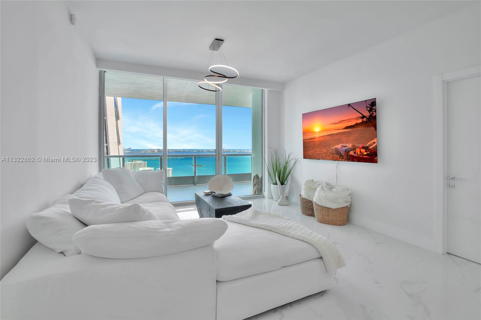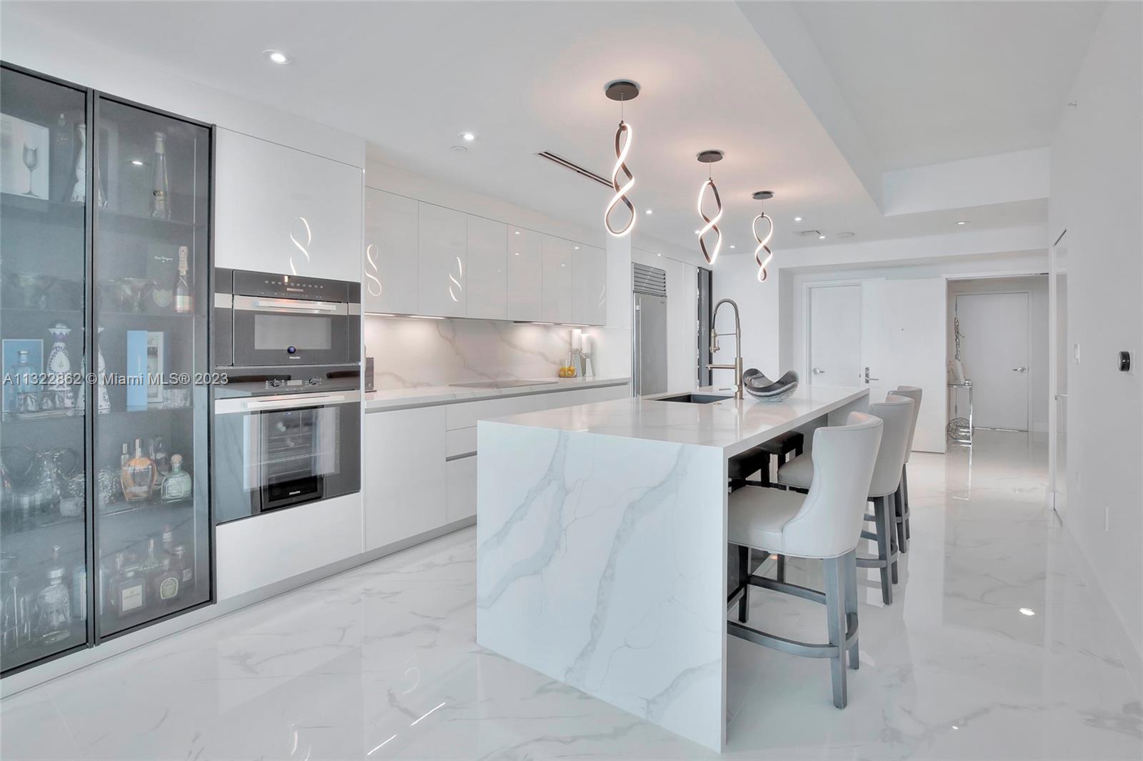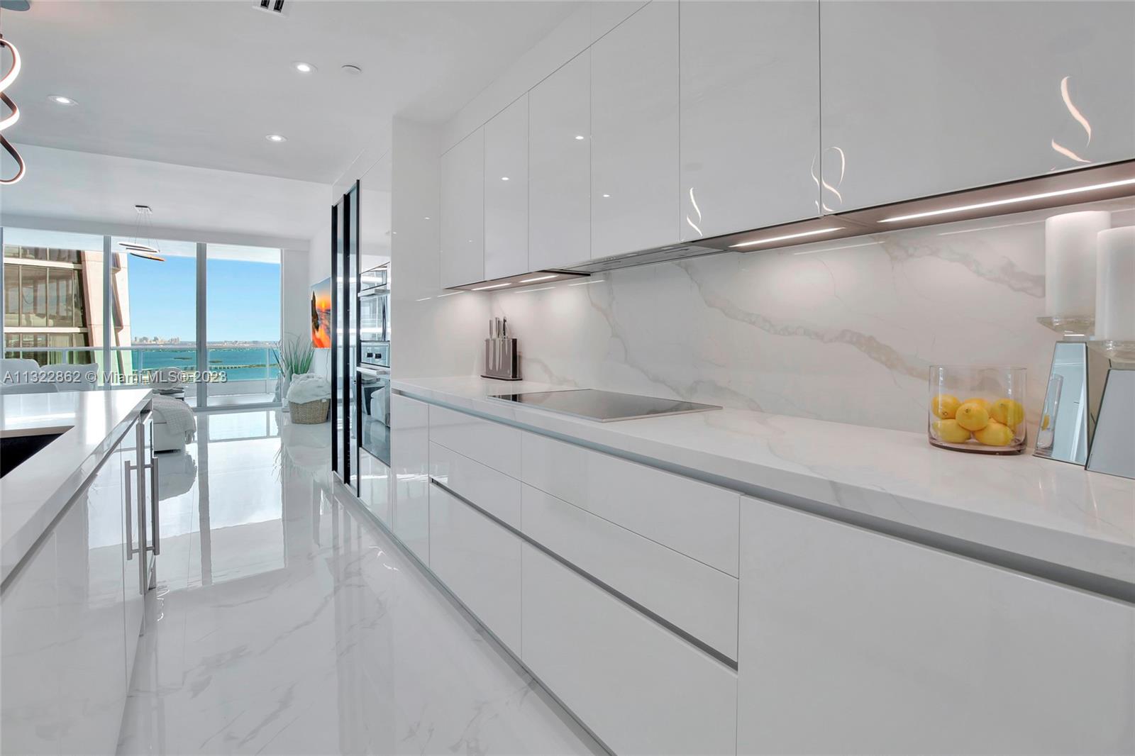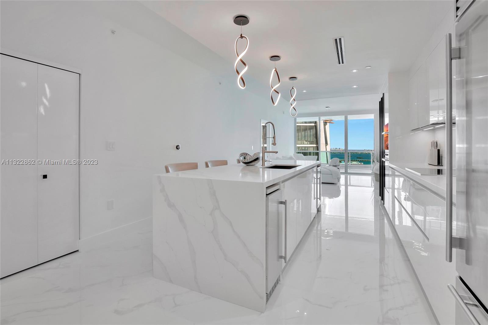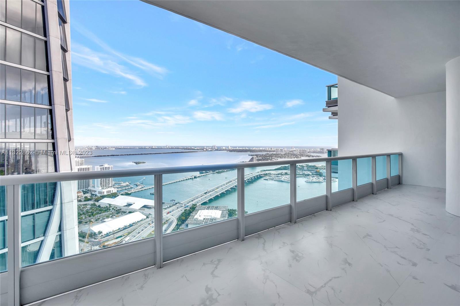 Live in the sky in this spectacular 2 bedroom, 3 full bathroom condo at 900 Biscayne. Enjoy entering your condo with a private elevator that opens through double doors to the highly sought after views of Biscayne Bay, Museum Park and Miami Beach skyline. This spacious condo is completely renovated top to bottom featuring top-of-the-line Italian custom finishes, 10-ft floor-to-ceiling glass, master bath with soaking tub, glass-enclosed shower, custom closets, in-unit laundry, and perfectly designed kitchen. Soak in the sunrise and sunsets on your 376 SF balcony, which is perfect for entertaining. Building includes top-tier amenities including two resort-style pool decks, spa, movie theater, clubroom, business center, BBQ area, and 24 hour valet/security.