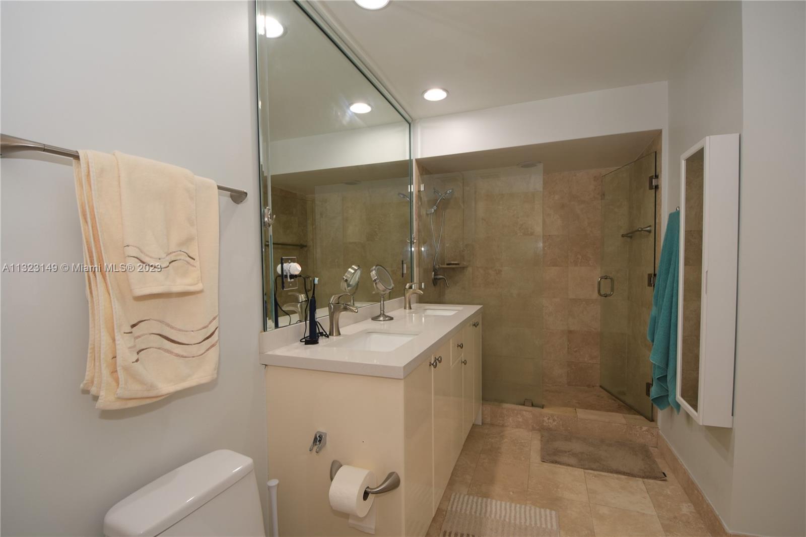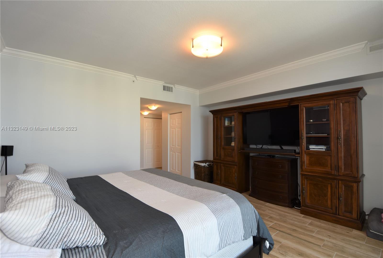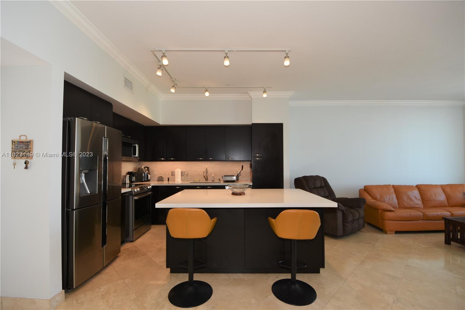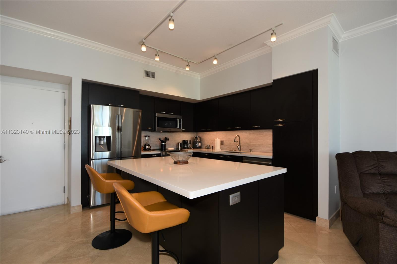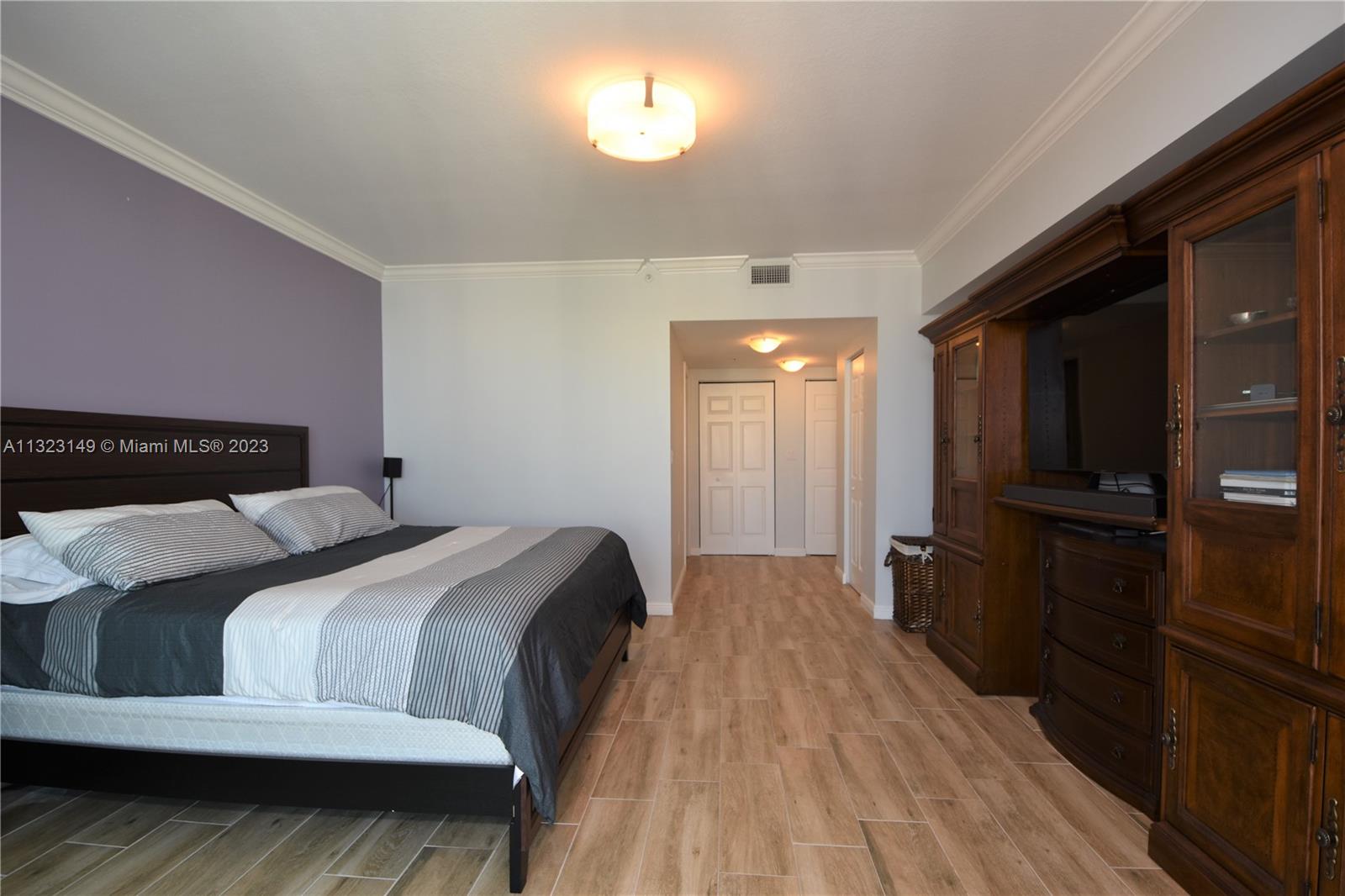 Most desirable floorplan in building for sale!!! 10 feet ceilings, great layout. Remodeled kitchen and bathrooms. New vertical blinds. Marble floors in living room and kitchen area. NEW AC UNIT. Custom built-in clostes. Crown molding throughout the residence. 2 parkings spaces assigned. Walking distance to shops, restaurants and Hallandale Beach! Easy to show.
