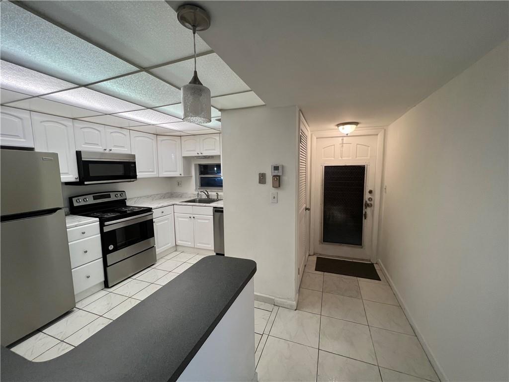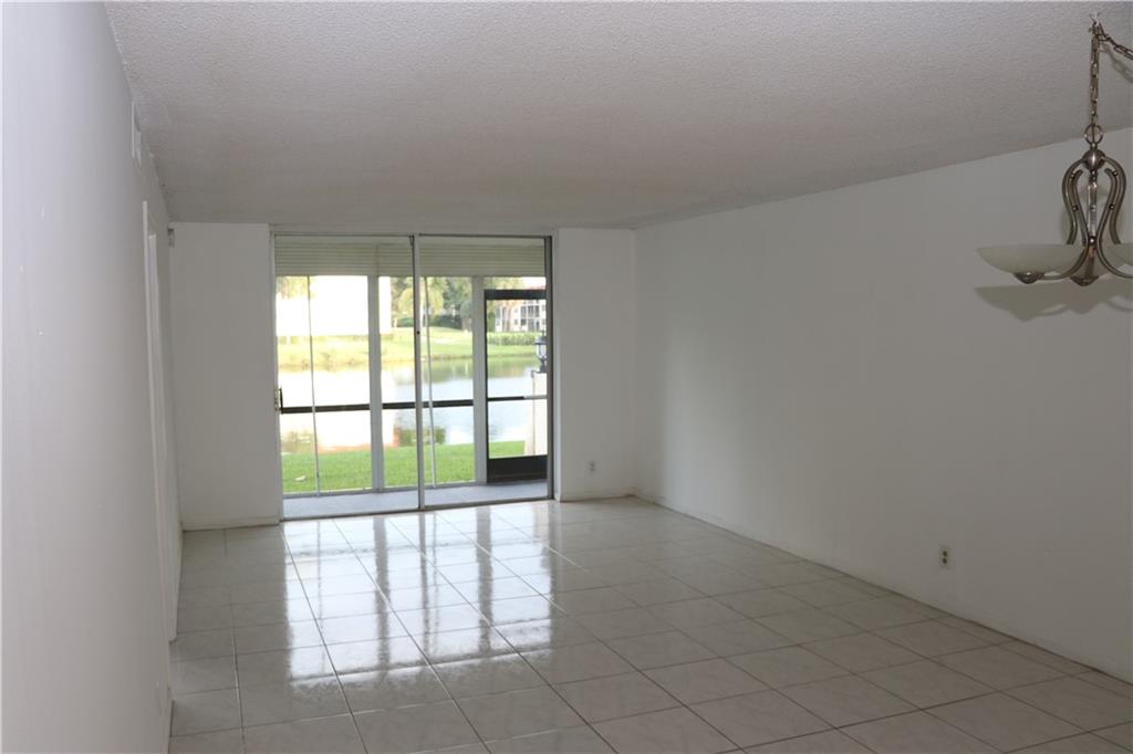 Best location with an amazing lake & golf course view. 2 bedroom and 2 bath, very spacious 1,170SF with a wide back screen patio for the wonderful lake view. White kitchen cabinets with all new stainless steel appliances with a great layout. White tiles and new vinyl tiles floor. Walk in closet. Unit is located in the 1st floor near to the laundry room, mail box, storage and elevator/stairs. Community has so much to offer, you must see!