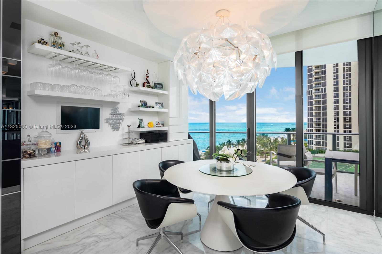 Regalia On The Ocean No. 6, featuring 360 degree unobstructed ocean views, 5,515 Sq Ft of luxury living space. 4 bedrooms, 5.5 bathrooms, 2,100 Sq Ft wrap around balcony. 10 ft ceilings, floor to ceiling windows, impeccable marble floors, fully integrated smart home, custom lighting throughout, automated shades throughout the residence. This exquisite, fully integrated smart home has an upgraded elevator landing area, wall coverings and doors to match the décor, and a glass mosaic wall in the powder room. Luxury amenities includes full service at beach/pool, private wine cellar, business center, state of the art gym/spa facilities & more!
