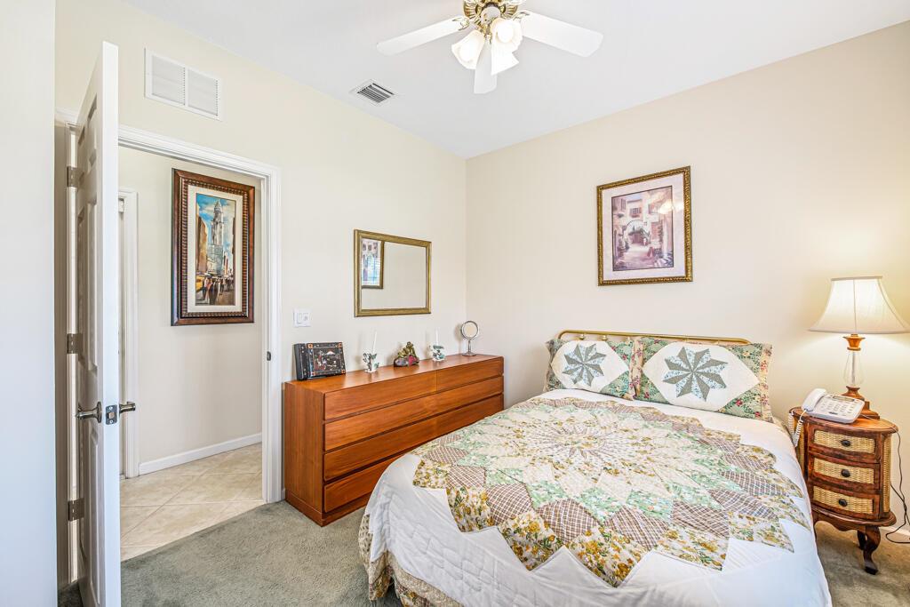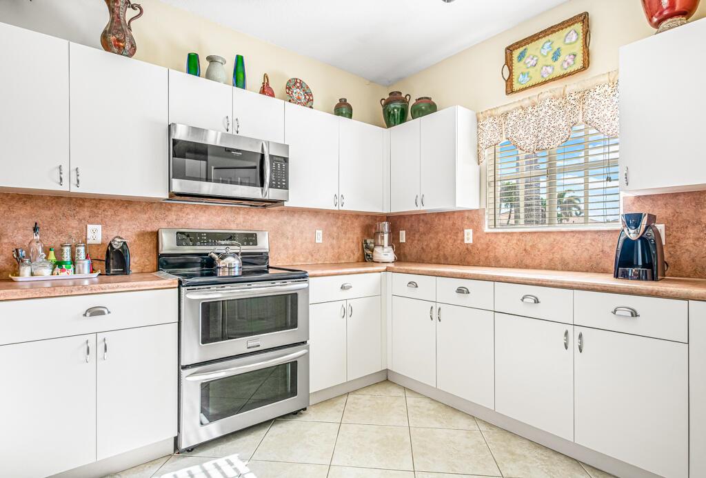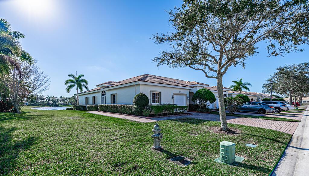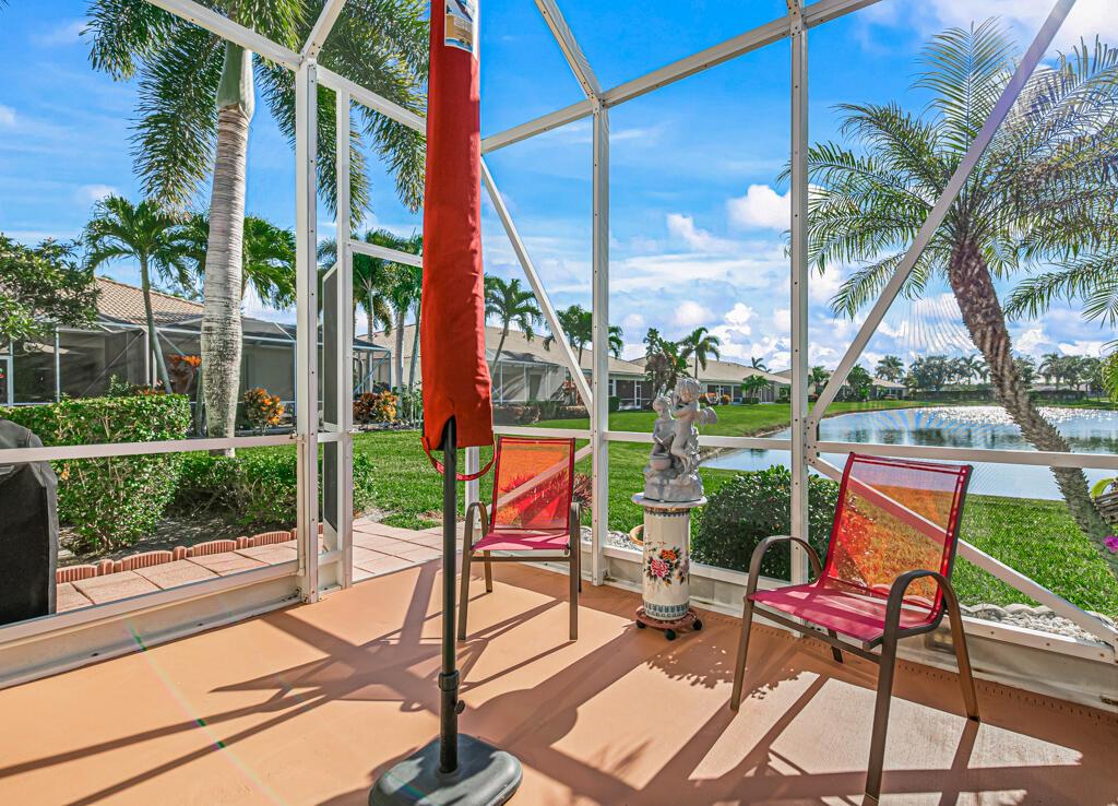 Stunning home on the lake. This is one you can't pass up! 3 bedrooms, 2 full baths with a one car garage situated on a beautiful lake. Enjoy relaxing on your patio seeing the sunset. The double patio features an outside screened enclosure, outdoor BBQ area and an enclosed patio you can use all year round. This is an end unit which gives you more windows letting in a lot of natural light. Fabulous engineered hardwood in the primary and one of the guest bedrooms. Very clean home. Well maintained. AC 1 1/2 yrs, dishwasher, microwave 2 years, updated stove, refrigerator and hot water heater. Washer/Dryer have been enclosed and are not in the garage. Built ins in the closets and pull outs in the cabinets. Complete with accordion shutters. The clubhouse is fantastic! Resort feel with 3 pools