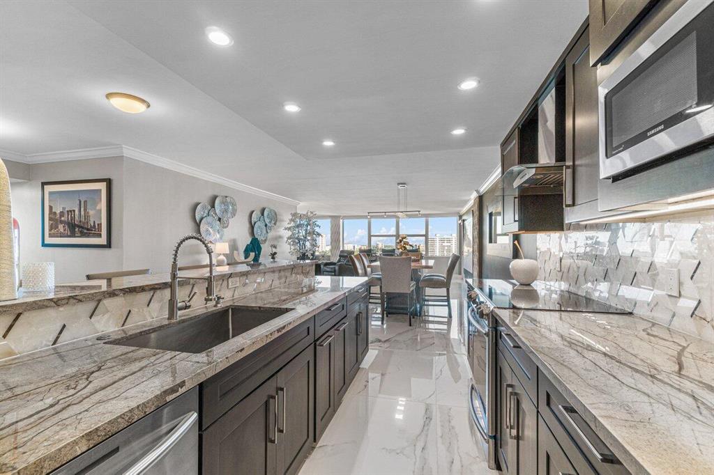 Completely renovated with luxurious finishes make for one unforgettable unit on the 15th floor offering an immediate WOW factor from the moment you enter this stylish residence. Epitomizing sophisticated, casual living where form meets function with an open and airy floor plan offering 1,718 square feet in a premier building on the Ocean! Additional features include: All HURRICANE impact windows and doors, 36 x 36 porcelain tile floors throughout the main living area, every room is oversized, large walk in primary closet, interior utility room with full size washer & dryer, and phenomenal views! The Whitehall building has been completely remodeled! Ideally located between the Boca Inlet and the Deerfield Pier on one of the widest sand beaches in the area with private Beach access. Enjoy