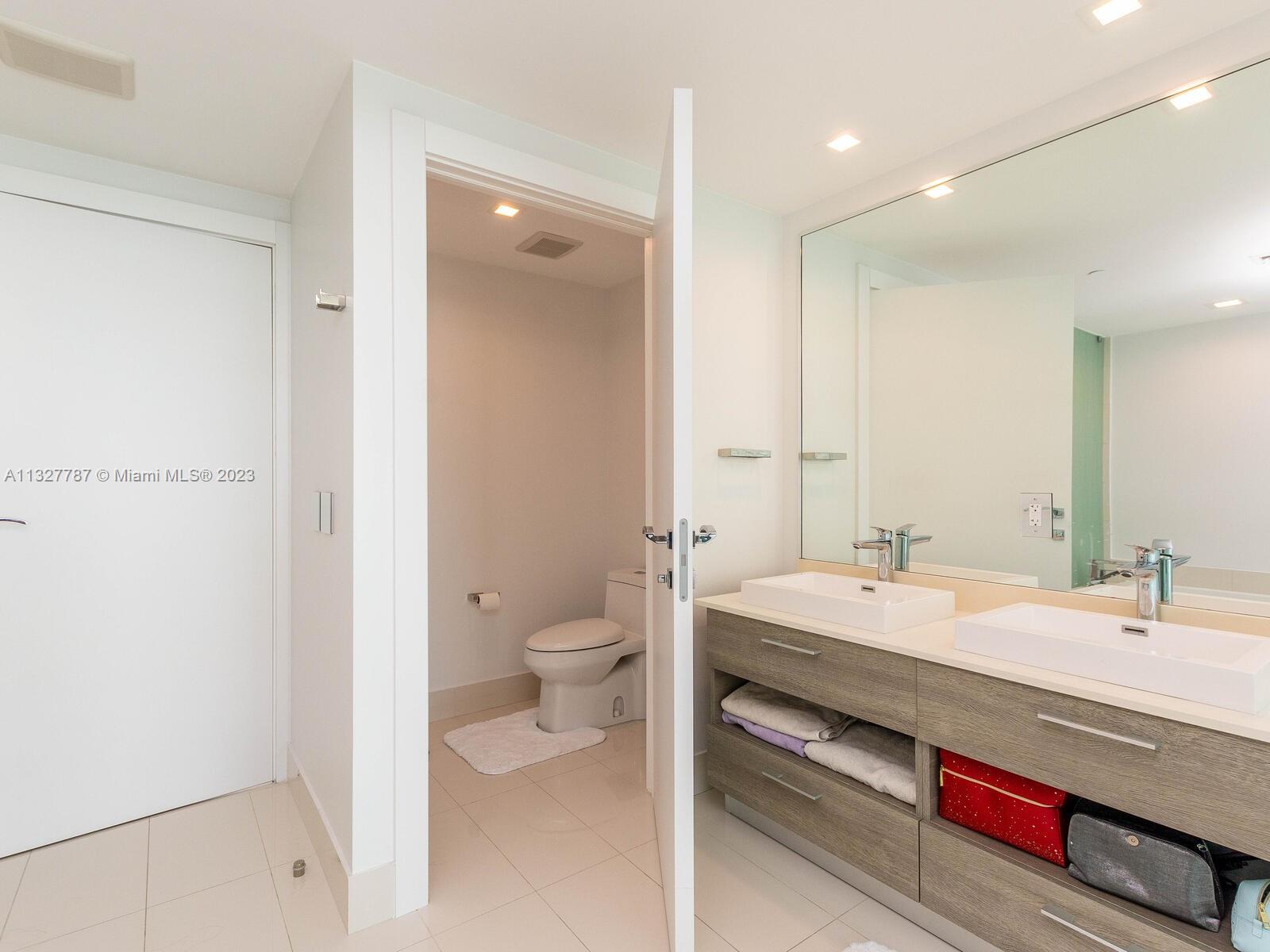 Best 2 BR offering in all Paraiso Bay Community: Over $80K of contemporary upgrades and renovations include recessed lighting with Iotty Italian Bluetooth controlled switches, wood/veneer wall finishes, new doors/fixtures, MBR sound inhibiting common wall, custom closets, sliding glass partition MBR Suite, built in bench storage 2nd BR, power/remote blinds and much more. Breathtaking unobstructed panoramic views from Biscayne Bay to the Atlantic, Miami Beach and Miami skyline! Master Assoc. amenities include resort 100' diameter pool, jacuzzi and towel service, indoor spa, gym, cigar and wine rooms, surround theatre, multiple kitchens indoor and out, multiple club, business and social lounges, bowling alleys/game room, Self Park + Valet services. Vacant upon closing. FURNISHED OPTION.