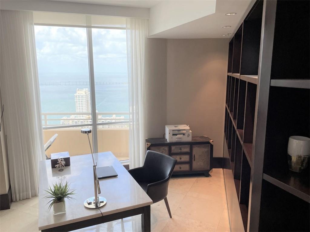Unobstructed views of Biscayne Bay. Two large balconies with access from social area and kitchen and master. Three on-suite bedrooms and a fourth den/office area may be converted to fourth bedroom. 3.5 bathrooms with Waterworks fixtures. Four individual parking spaces, one bay front private cabana and one storage included. Custom built-ins include large cigar humidor with humidification system. Full luxury built-in wet-bar area with wine storage, three fridges. Lutron HomeWorks lighting. Electric shades. "Closing is preferred in March 2023 or later"