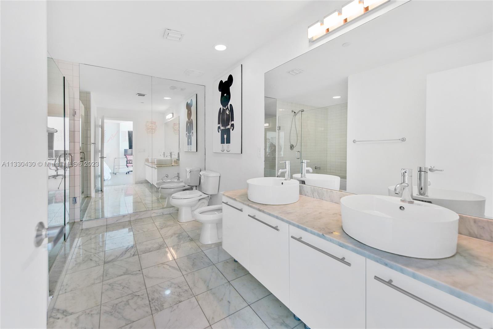 Spectacular direct water views throughout this 2-level residence in Marina Blue, a luxury building in the heart of downtown Miami. Dramatic 20+ ft ceilings & walls of glass create light-filled living spaces that open to a large balcony. European style kitchen features updates including: new refrigerator, microwave & quartz countertops. 2nd level primary suite has loft sitting area, walk-in closet w/ custom cabinetry & large bath. Additional features: electric black-out blinds, 1 assigned pkg. space + extra storage space on same floor as the unit. Walk to the Perez Art & Frost Science Museums, FTX Arena, trendy shopping & dining and bayfront parks. 1st class building amenities offered: lobby w/ concierge, fitness center & 2 infinity-edge pools. Minutes drive to Brickell, MIA & MB.