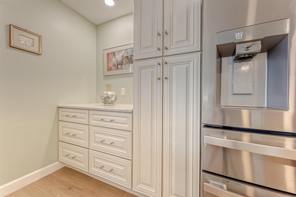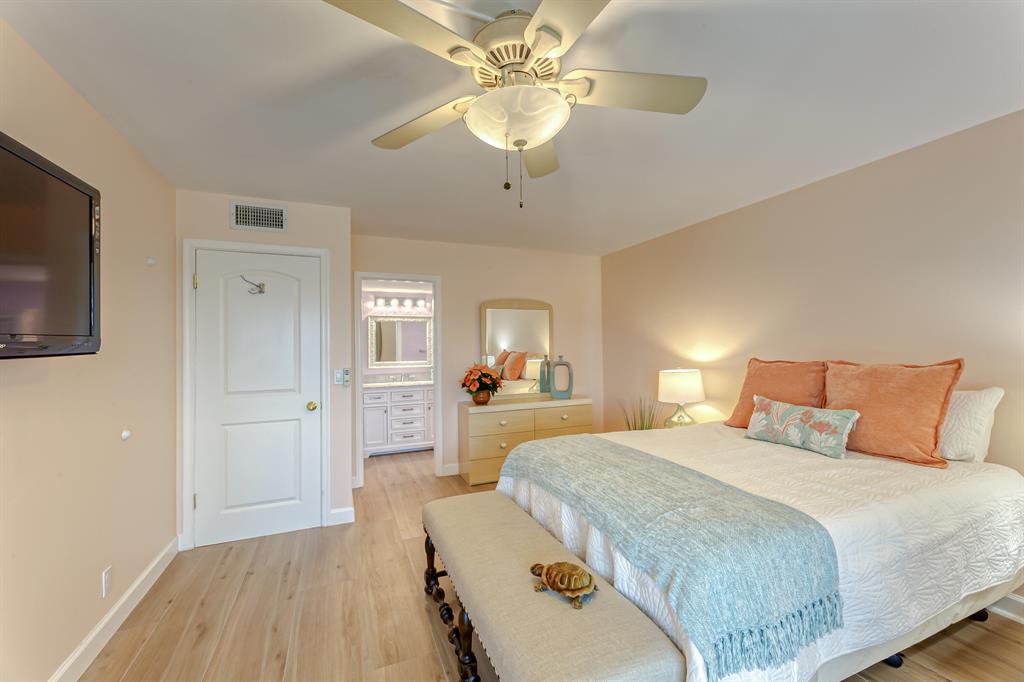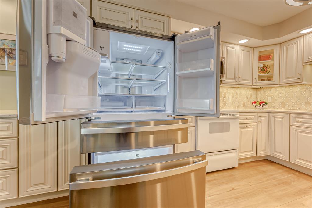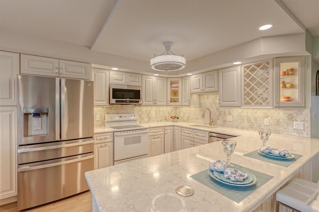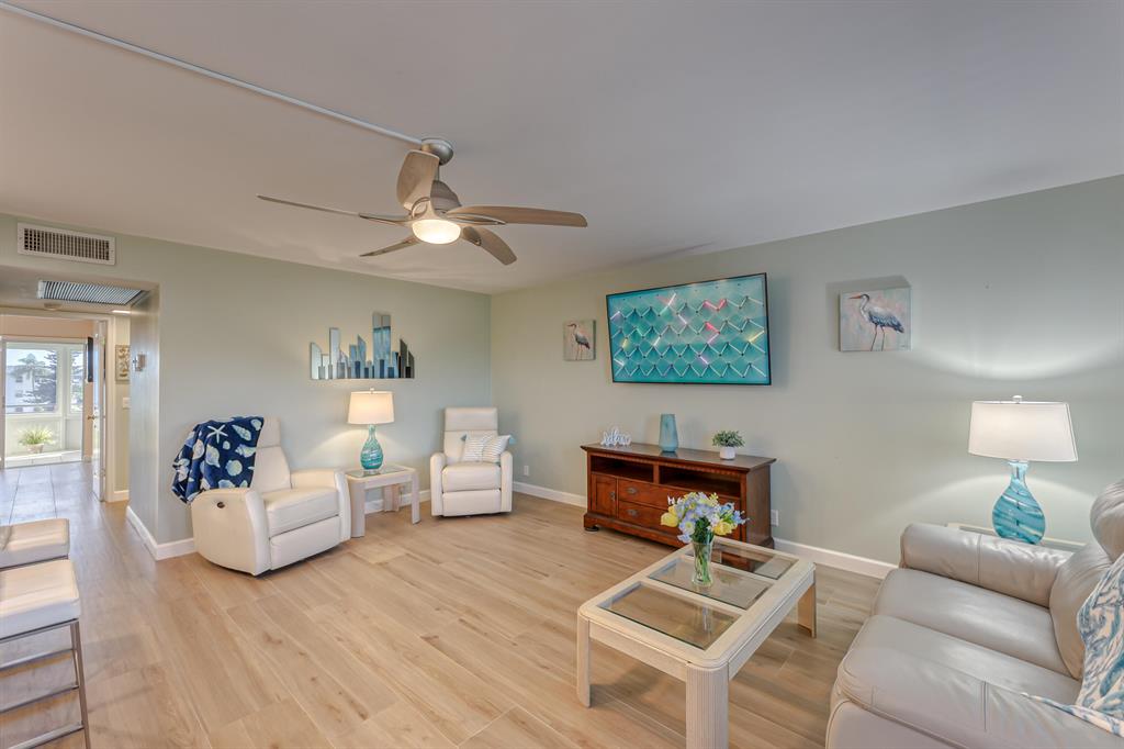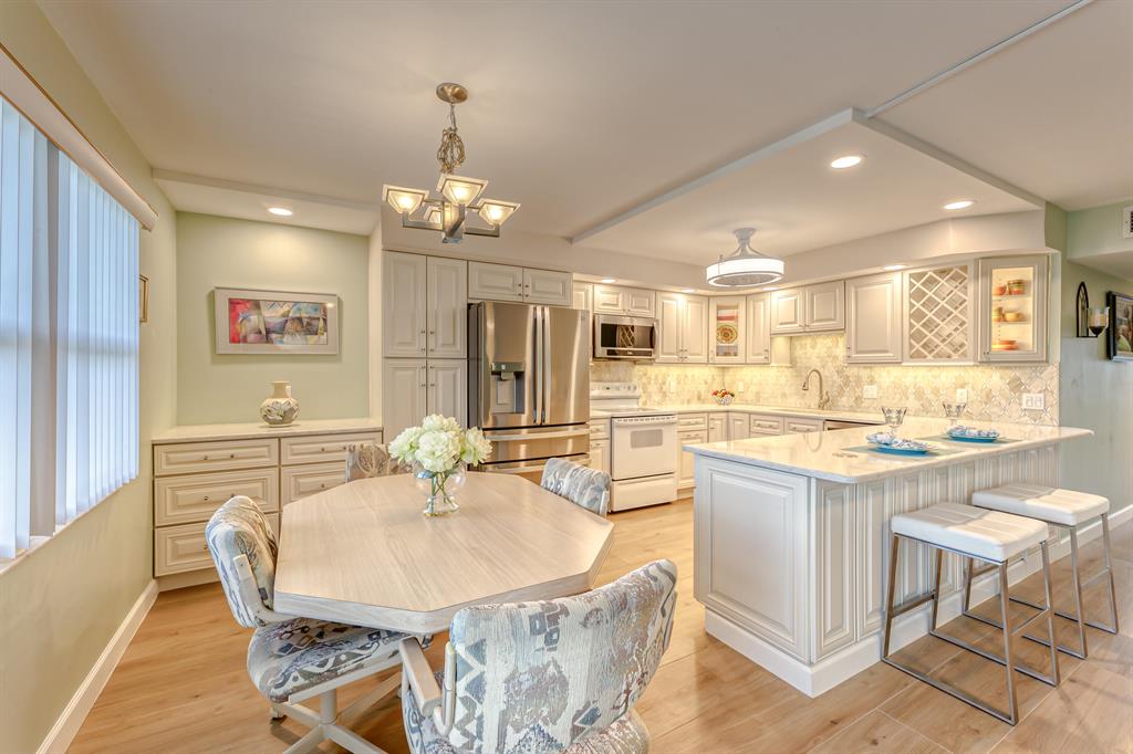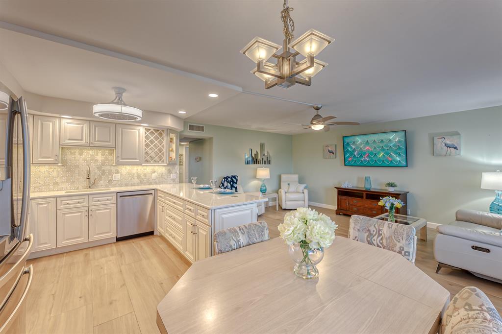 Move right into this spectacular, renovated, open concept condo located in the desirable Wellington section of Century Village. Wood grain tile floors throughout. The kitchen features all wood cabinets, soft close drawers/doors, stunning quartz countertop with marble backsplash, undercabinet dimmable lights, 2021 Kenmore Elite four door refrigerator/freezer, 2021 KitchenAid dishwasher and Samsung microwave. Entertain in your spacious living room which features two comfortable electric recliner chairs and electric recliner love seat. Enjoy the breathtaking lake and garden views from your immense patio. Throughout the condo you will find high guard hurricane impact glass windows, but you will NOT find popcorn ceilings. Enjoy entertaining at