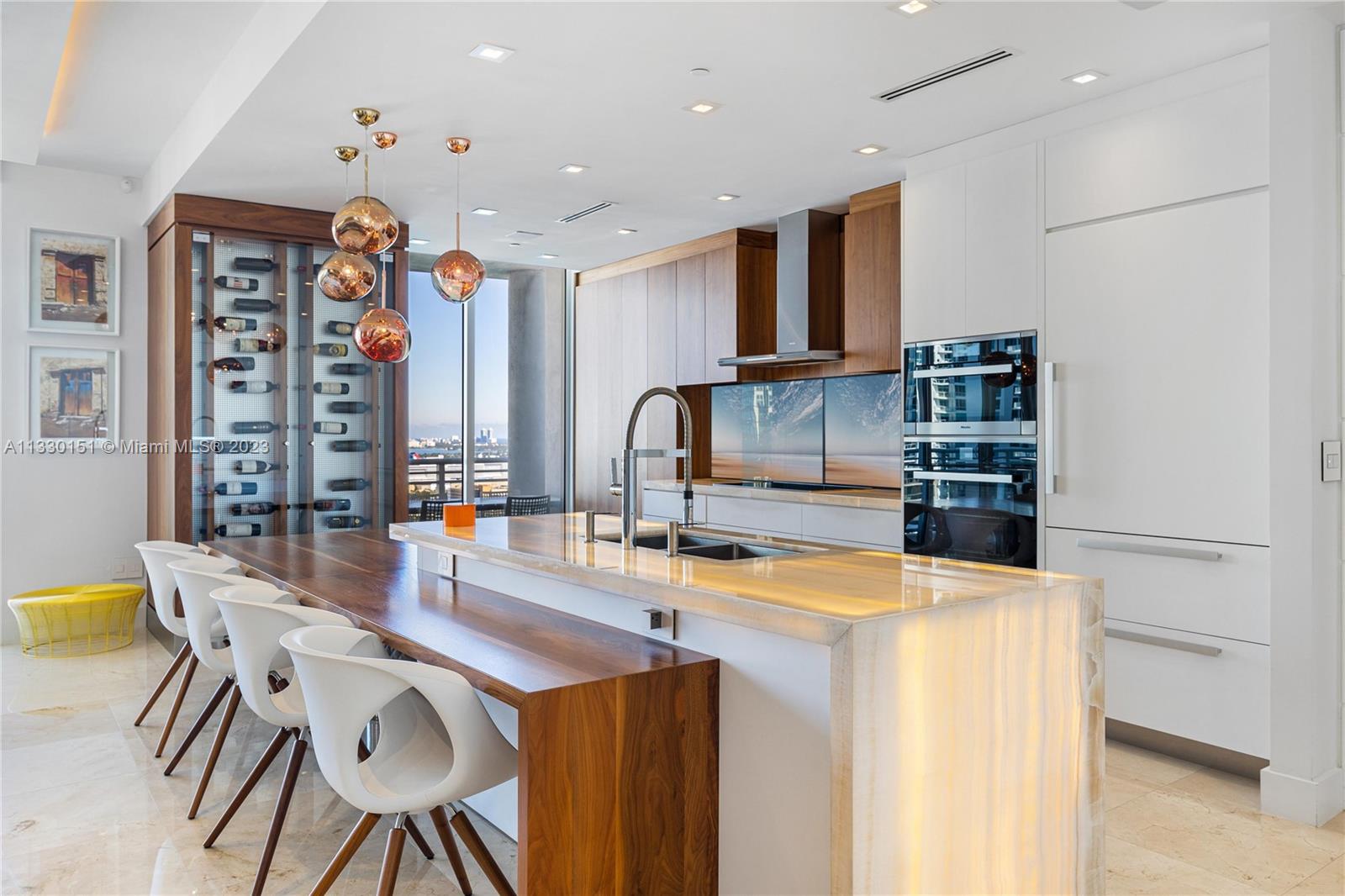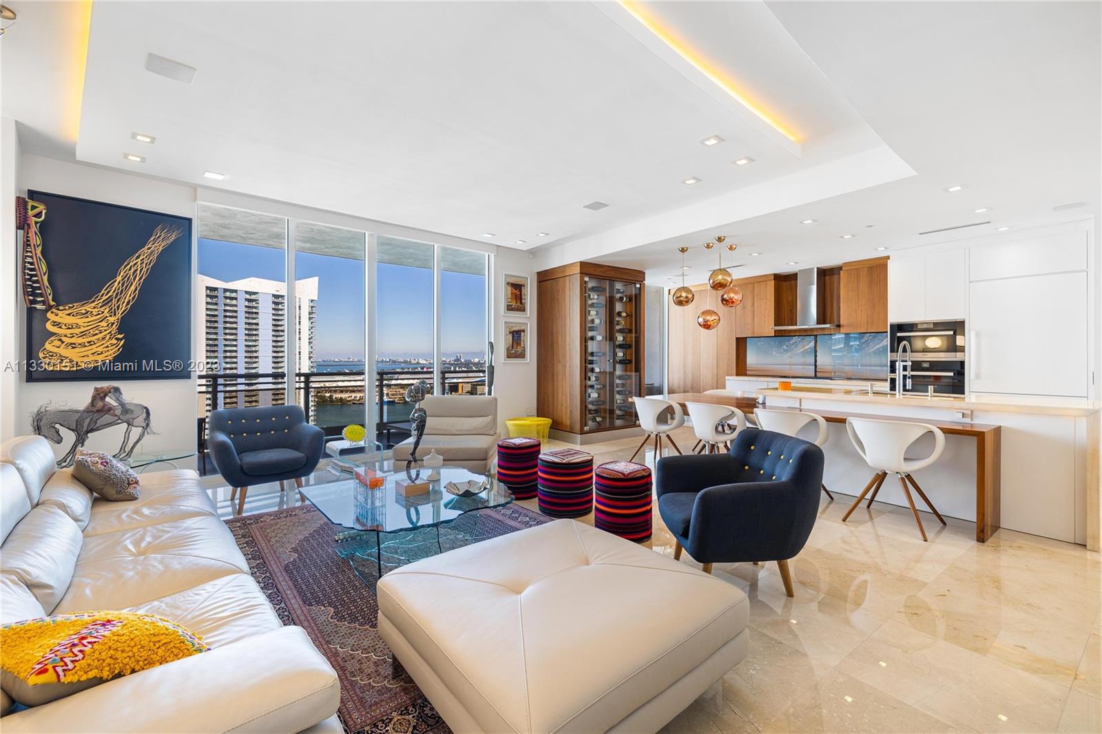 Stunning turnkey condo at the highly desirable Carbonell in Brickell Key. Residence 3207 with 10ft ceilings has been professionally renovated from top-to-bottom with only the finest designer-curated finishes. Warm tones and rich textures are used throughout to create spaces that are striking & modern yet comfortable for entertaining and everyday living. American Walnut kitchen cabinetry and dining room. Onyx countertops & top-of-the-line Sub Zero & Miele appliances. The primary suite offers both bay & city views. Black Marble baths with walnut vanities. Large closets with custom cabinetry. The Carbonell is a full-service building with a state-of-the-art fitness center, Basketball Court, and a gorgeous lobby. The unit comes with two parking spaces & two air-conditioned storage units.