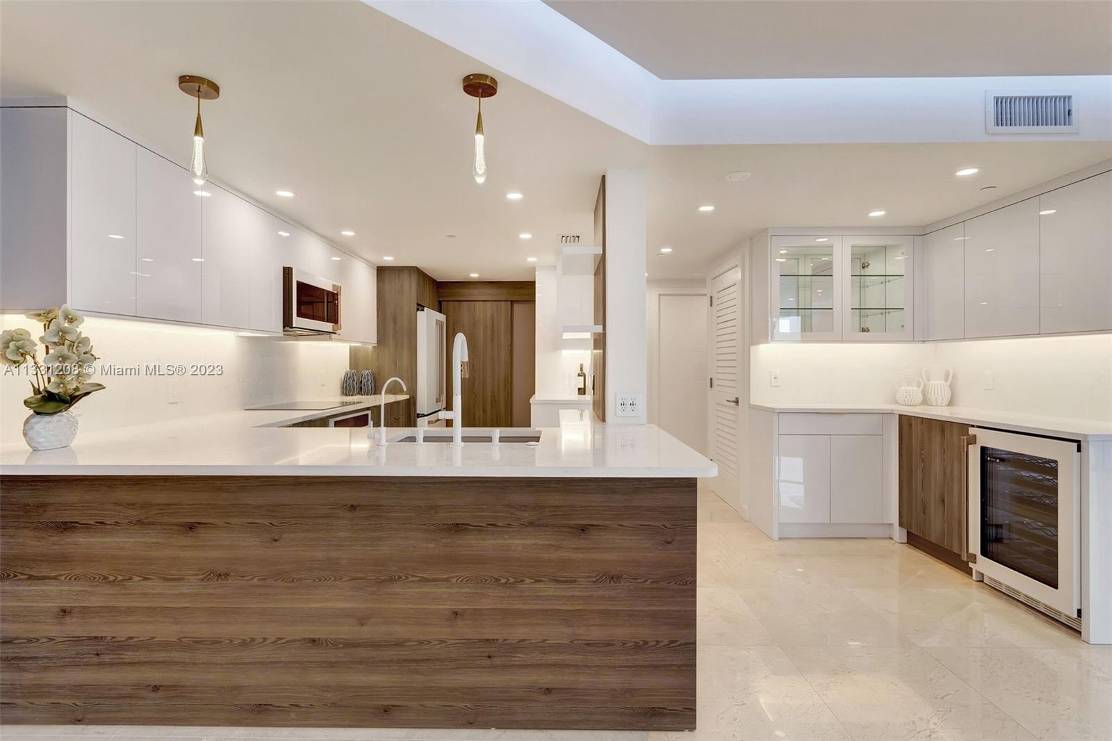 EXQUISITE APARTMENT! Views to die for and five star living. Welcome to this turn-key bright, tastefully renovated 3 bed/3 bath apartment. Open kitchen w/ Monogram induction cooktop & GE Café line appliances, including induction oven & microwave, functional & inviting bar area, marble floors, dimmable inlaid led lights, surrounding ambient lighting(color/white). It boasts spectacular unobstructed ocean views from wrap around wide balcony. 3 parking spaces (2 assigned) & 3 storage spaces. Located on Brickell Key with bay pool, 2 level gym, sauna, BBQ, squash, Conference Room, Pool Room, Computer Room, Concierge, Package receiving area, Bike Room, direct access to jogging/path loop and valet parking. Pet friendly building. Walking distance to Brickell City Center, restaurants, & so much more!