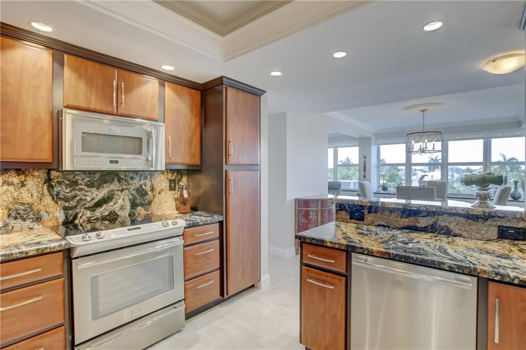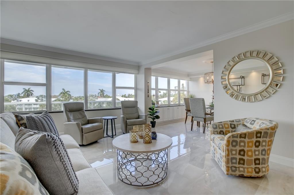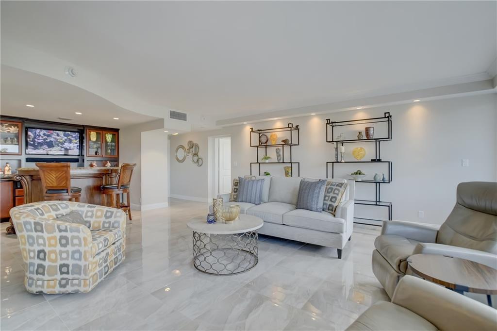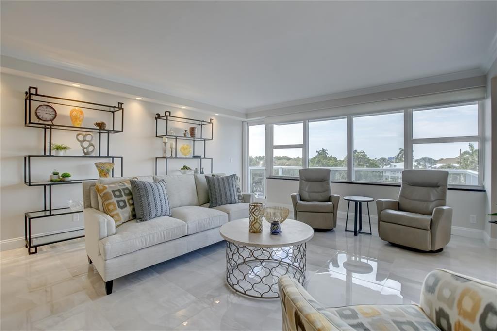 STUNNING 3 bedroom currently being used as a 2 bedroom with gorgeous porcelain floors and exquisitely modern finishes. Totally remodeled from top to bottom. Be the envy of your friends with this beautiful and sprawling 1400 sq ft corner unit. Completely furnished with all the trimmings, high end furniture included!! Best deal in all of Broward County to be this close to the beach with this many amenities!! 24 hour security, new roof, year round heated pool, bocci ball court, separate clubhouse on the Intracoastal. A 5 acre oasis in the middle of walking distance to everything - restaurants, retail, grocery, entertainment, golf, boating. 55+ community, cash only, no renting. Minimum income of $88,992 or higher. Cable TV & internet included in $927 monthly maintenance.