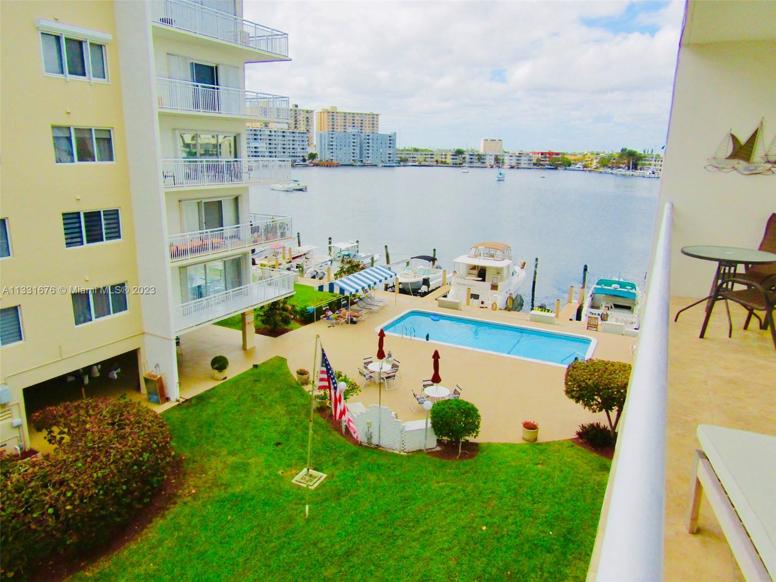 Impeccable corner unit with an amazing Panoramic water view from a wrap around balcony overlooking water on both sides. Completely remodeled unit with open concept kitchen, granite countertops, stainless steel appliances, wood cabinets, tankless water heater, recessed lighting, renovated bathrooms with modern vanities, large pantry. Impact windows and accordion shutters on balcony doors. Two assigned storage spaces and free laundry on each floor. The building is designed with privacy in mind as there are only 4 units per floor with wrap around balconies. May contact HOA for boat dock leasing. 40 years certification done. One mile from the beach, close to shops, restaurants and Gulf Stream Racetrack. Building lobby was recently remodeled.