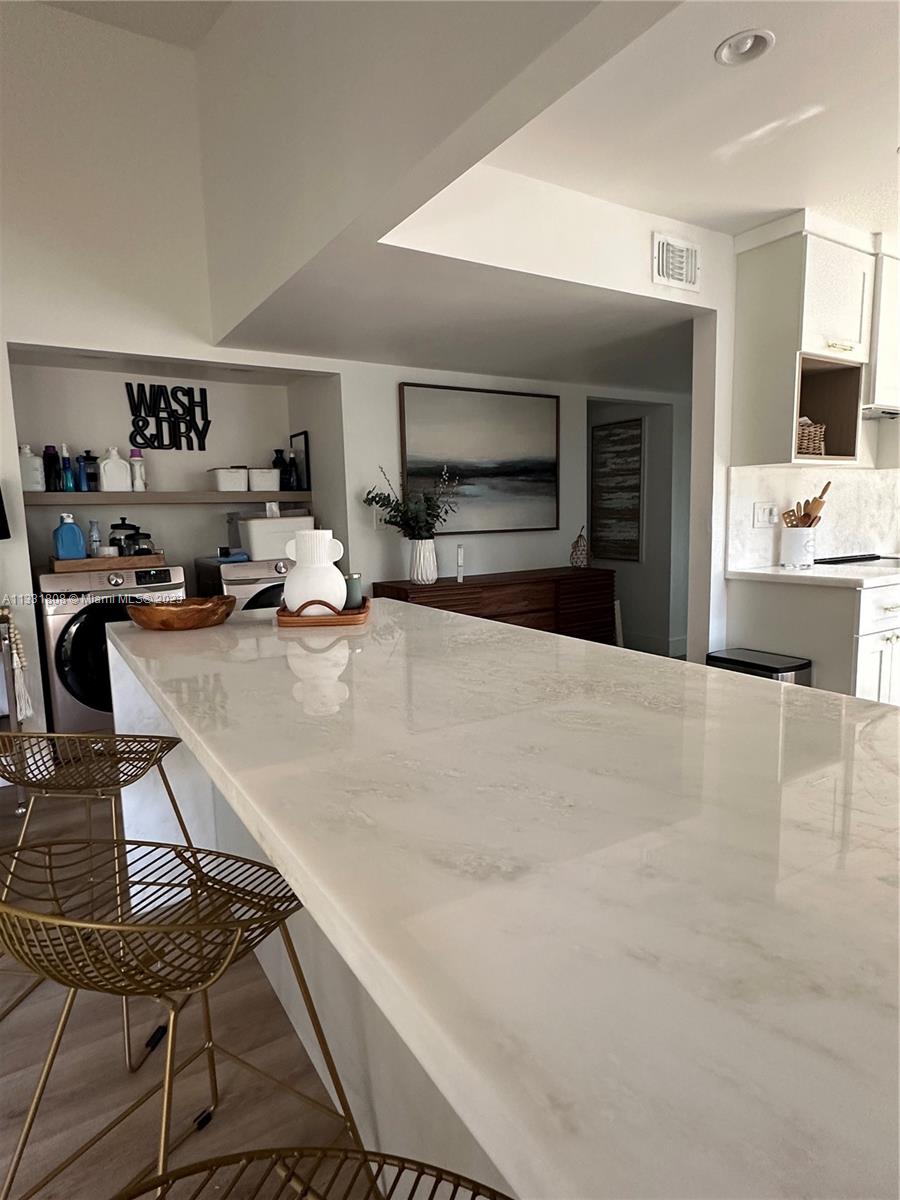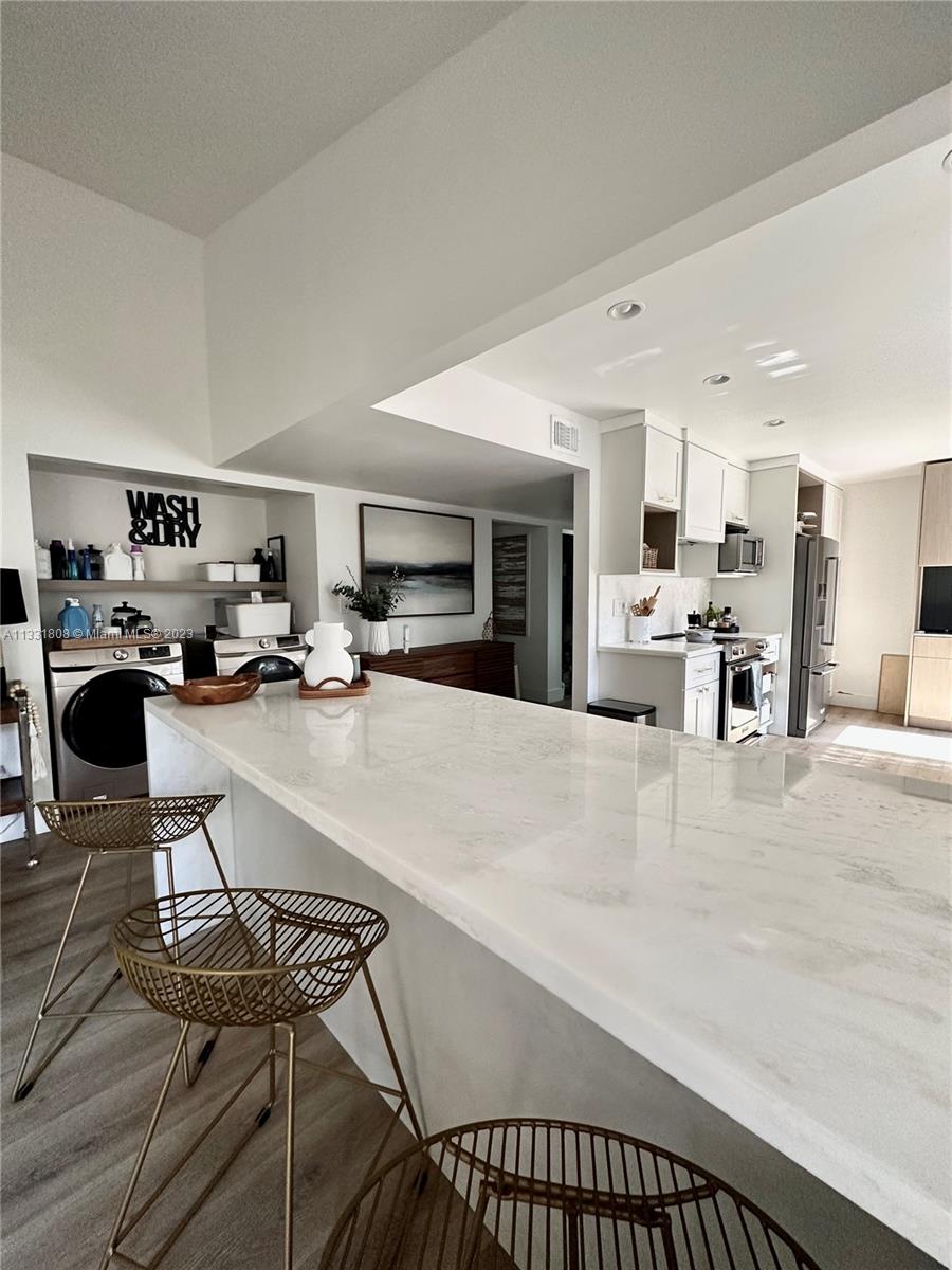 THIS MODERM FULLY RENOVATED VILLA IS A 2/2 WITH UNIQUE LAYOUT- OFFICE SPACE- MASSIVE WALK IN CLOSET- INTEGRATED KITCHEN WITH WOOD CUSTOM CABINETS/QUARTZITE COUNTER TOP AND HIGH IN APPLIANCES. MASTER BATHROOM WITH MARBLE TILE- TANKLESS WATER HEATER-NEW ELECTRIC PANNEL-WATER PROOF VINYL FLOORS- NEW ROOF FROM 2022. EXCELLENT COMMUNITY.