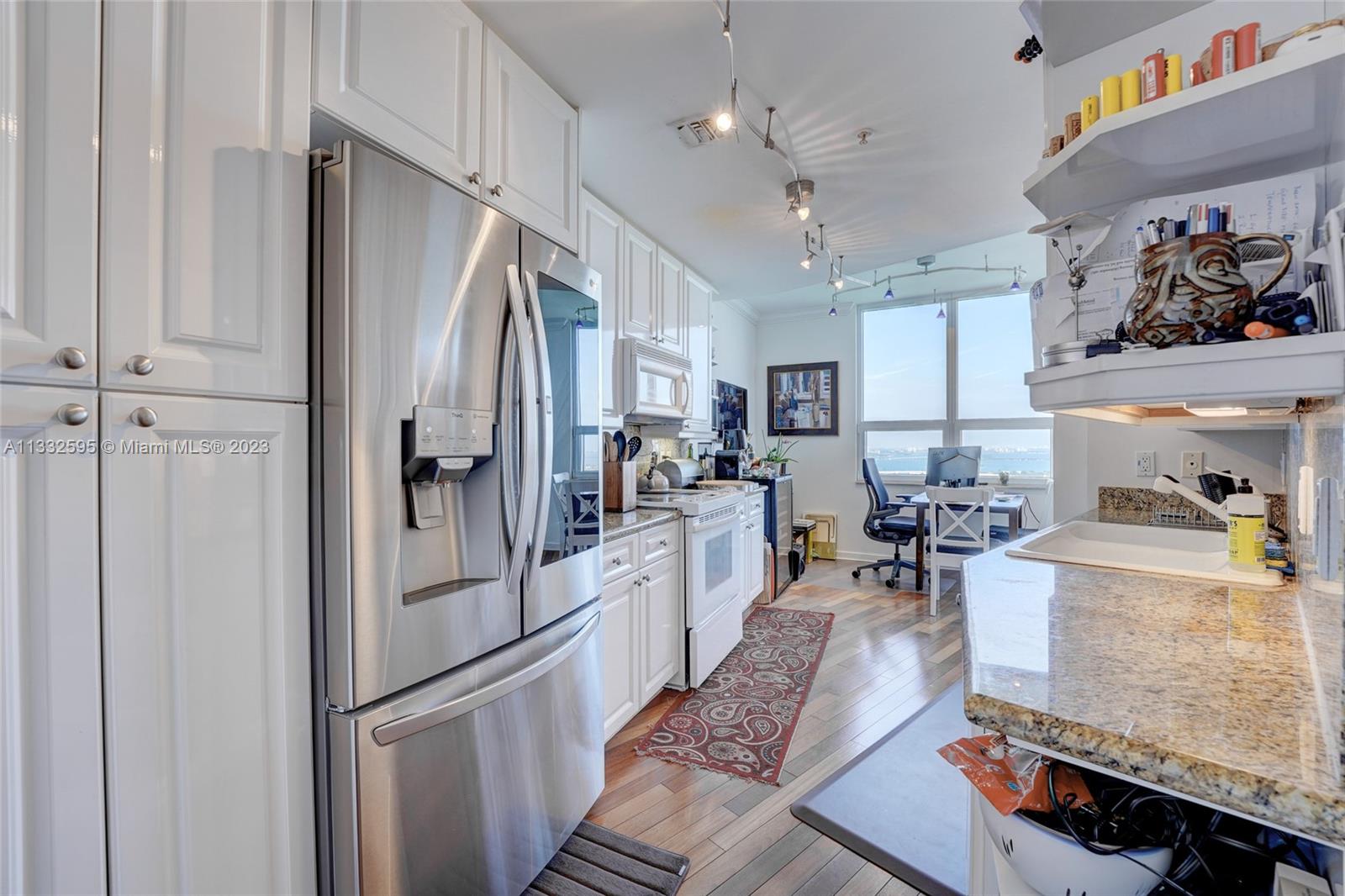Excellent opportunity to own a large one bedroom condo with a den which can be converted to kids , guest or office with 2 full bathrooms, large kitchen with water view and breakfast area, built in closets and wood floors. Line 02 on Three Tequesta has one of the most beautiful breathtaking views of all Miami: water views, city views, the port of Miami, fireworks, Downtown Miami skyline. Has 2 assigned parking spaces, tennis court, indoor basketball, cross-fit gym ,sauna heated pool outdoor grills, party room, conference and card room, 24 hours concierge and free valet. Is easy to show.