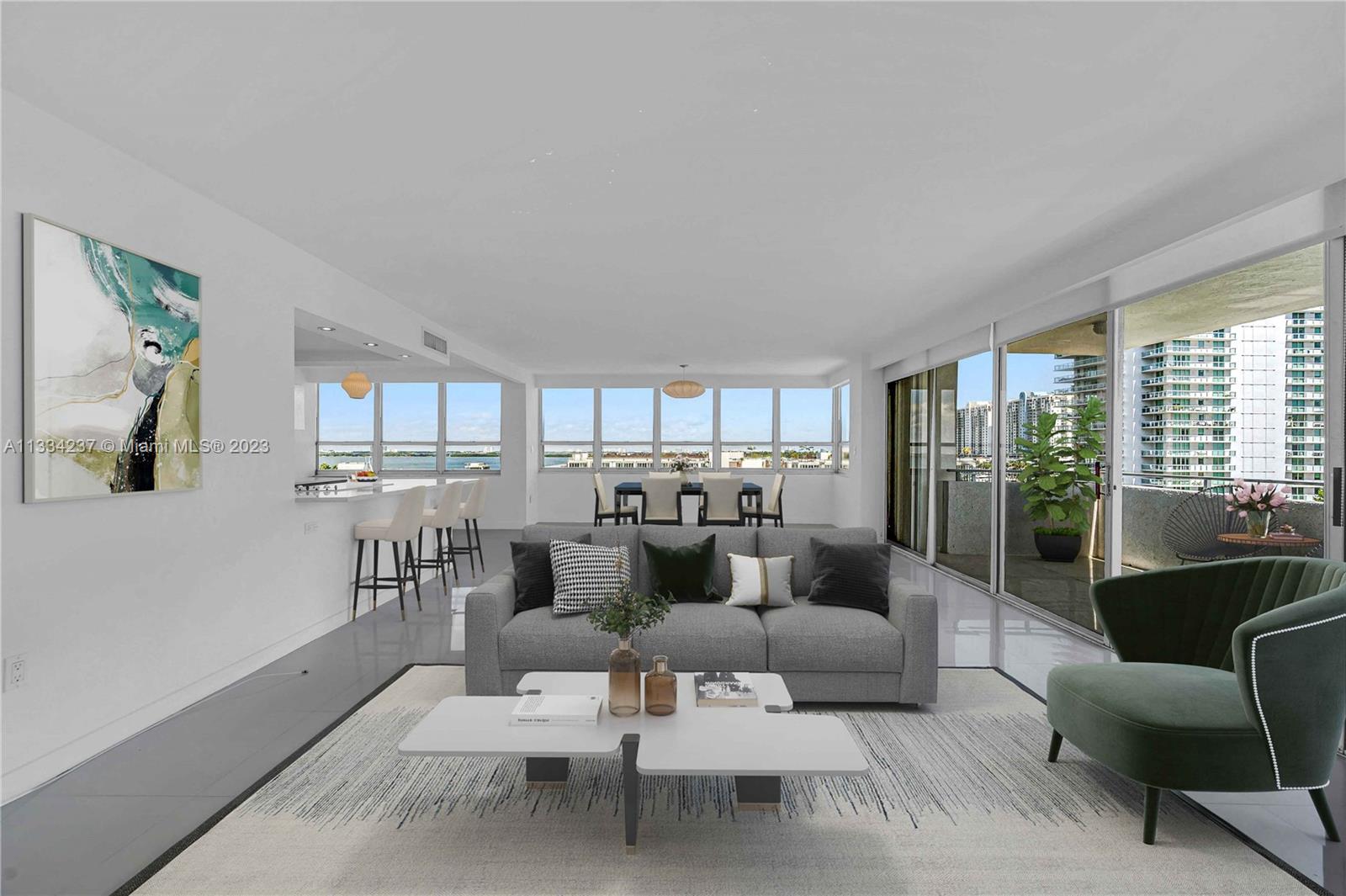 Opportunity returns! Front corner unit with great natural light from over 80ft of glass windows/doors. Park and water views from kitchen and dining area, bay view from balcony. Spacious floor plan with ample storage. White porcelain floors in living areas, matte black in bedrooms. Ensuite bathrooms, walk in closets with built ins, powder room, and open kitchen. Walk to shopping, dining, golf, beach and more. Minutes to Wynwood, the Design District, and Miami International Airport.