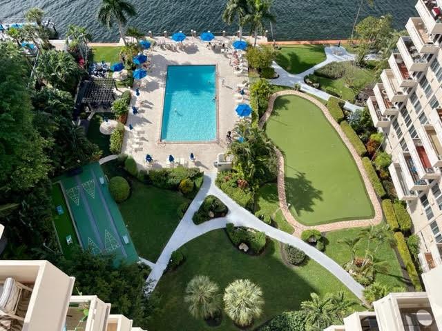 Rarely available TOP FLOOR SOUTHWEST CORNER PENTHOUSE! Breathtaking balcony and windows views of Ocean, direct Intracoastal, western city and sunsets views and north up the canal! Every view is amazing! Very, very clean and immaculately maintained unit ready for your finishing touches. Central a/c, impact windows and doors, crown moldings, Plantation shutters, neutral colors and huge amounts of storage space. Look no further and make this one your own. Secured lobby with 24 hr. doorperson, exercise room, library, social room, putting green, bbq area, shuffleboard, bocce, heated pool and peaceful dock on the intracoastal. Located across the street from the beach, close to shopping, restaurant's and more. Fee includes cable tv. One assigned parking & storage spot. Cash purchasers only.