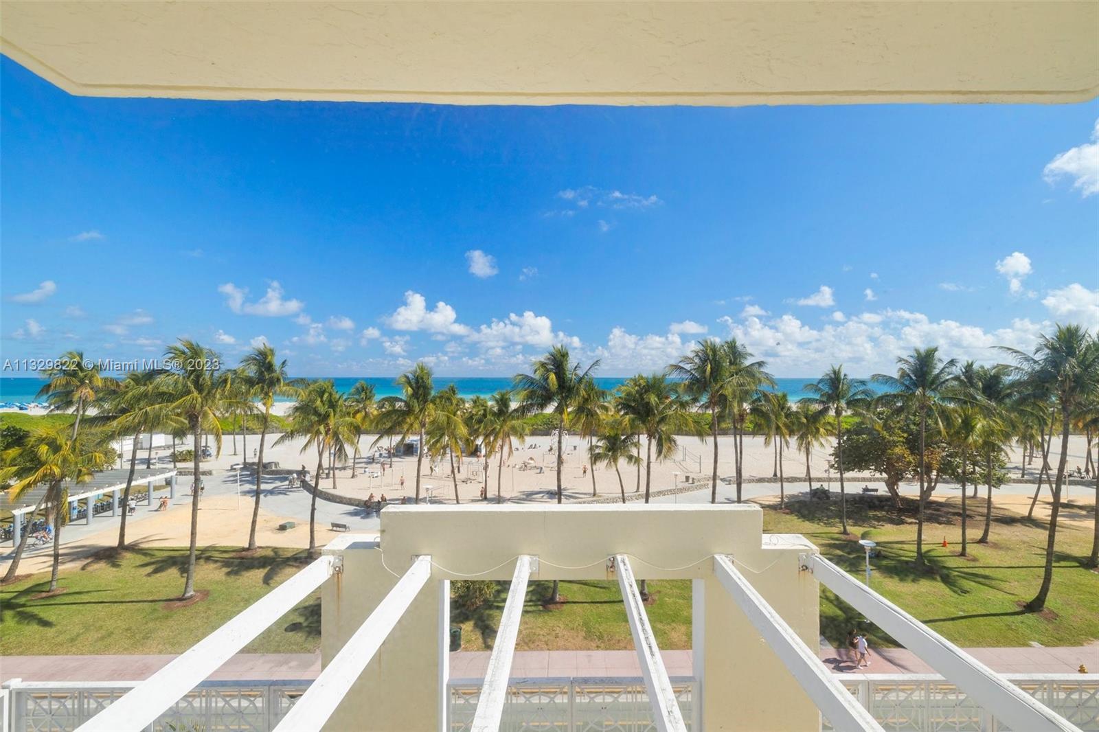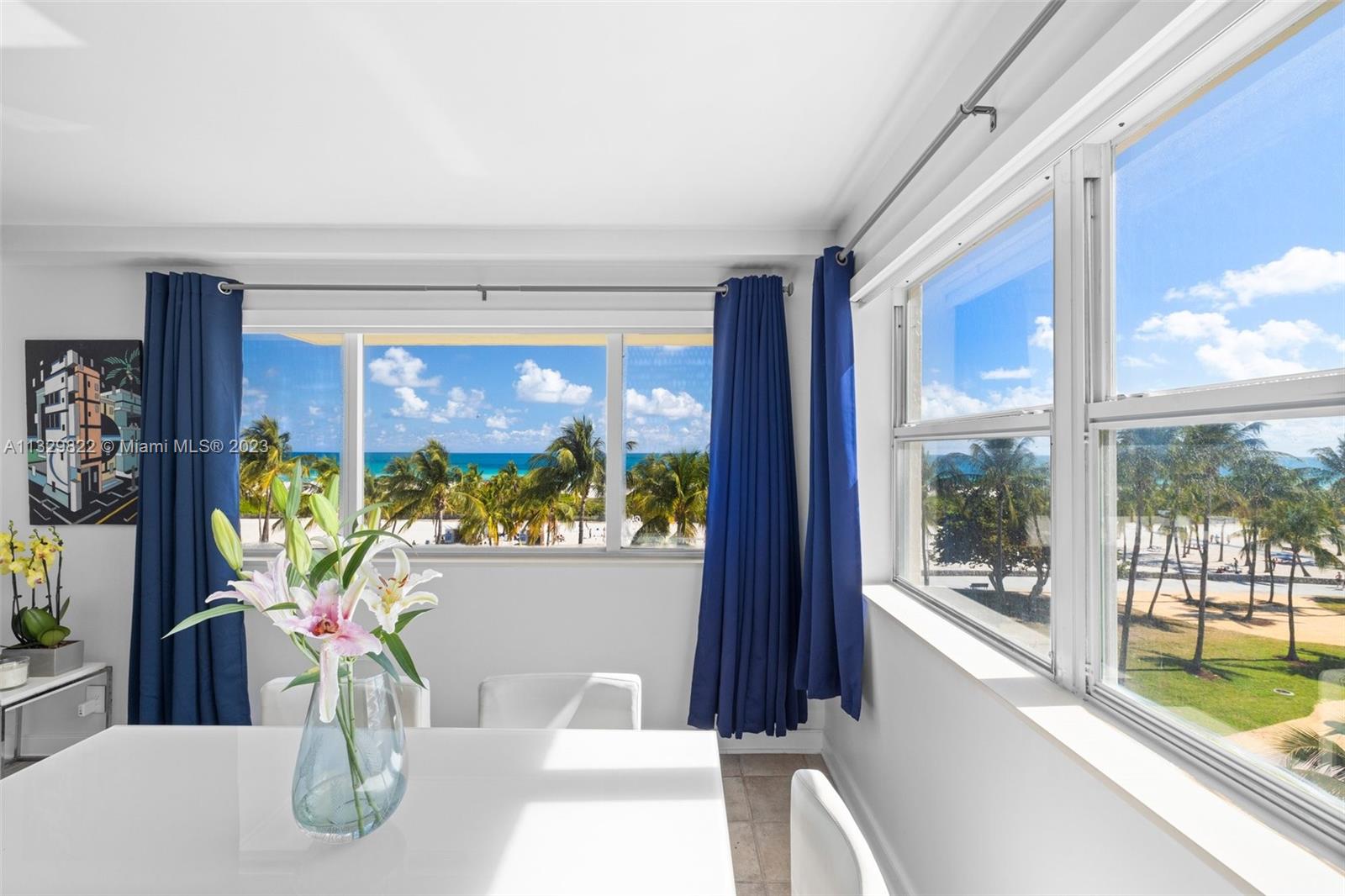 LOCATION! LOCATION! One of a kind. Located on the world famous Ocean Drive and across from one of the most beautiful tropical beaches, this Art Deco 2 bedroom 2 bathroom apartment features a very large living room overlooking the ocean, park and boardwalk. The property has no rental restriction which makes it the ideal property for vacation homeowner rentals and investors. The apartment can be rented daily through the management company of the hotel or independently. HOA includes cable TV, internet and electricity.