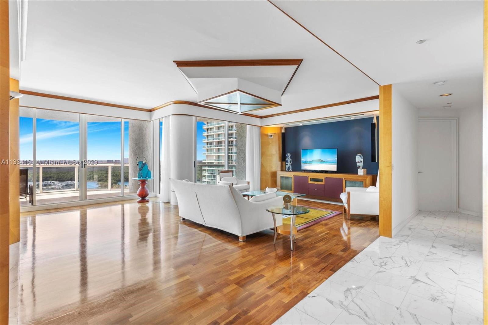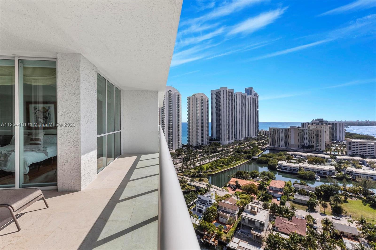 Welcome to Oceania Island! Located in coveted Sunny Isles Beach. BEST PRICED UNIT FOR SALE IN BLDG. This large & spacious floorplan consists of 1,990/SF & features 2 bdr, 2 full baths, plus large den, & spectacular waterfront views from your 24th floor wraparound terrace - South Florida living at its best! High ceilings, wood & marble combination flooring throughout, balcony access from every room, floor to ceiling windows w/motorized shades, can be sold furnished/unfurnished. 24hr gated security entrance & doorman. Pet-friendly bldg. Comes w/1 covered parking space, can rent addt’l if needed. Across street from beach, walking distance to Bal Harbour Shops, restaurants, & fantastic schools. Close to Houses of Worship, Aventura Mall, Turnberry Golf Club; Near 2 Int'l Airports.