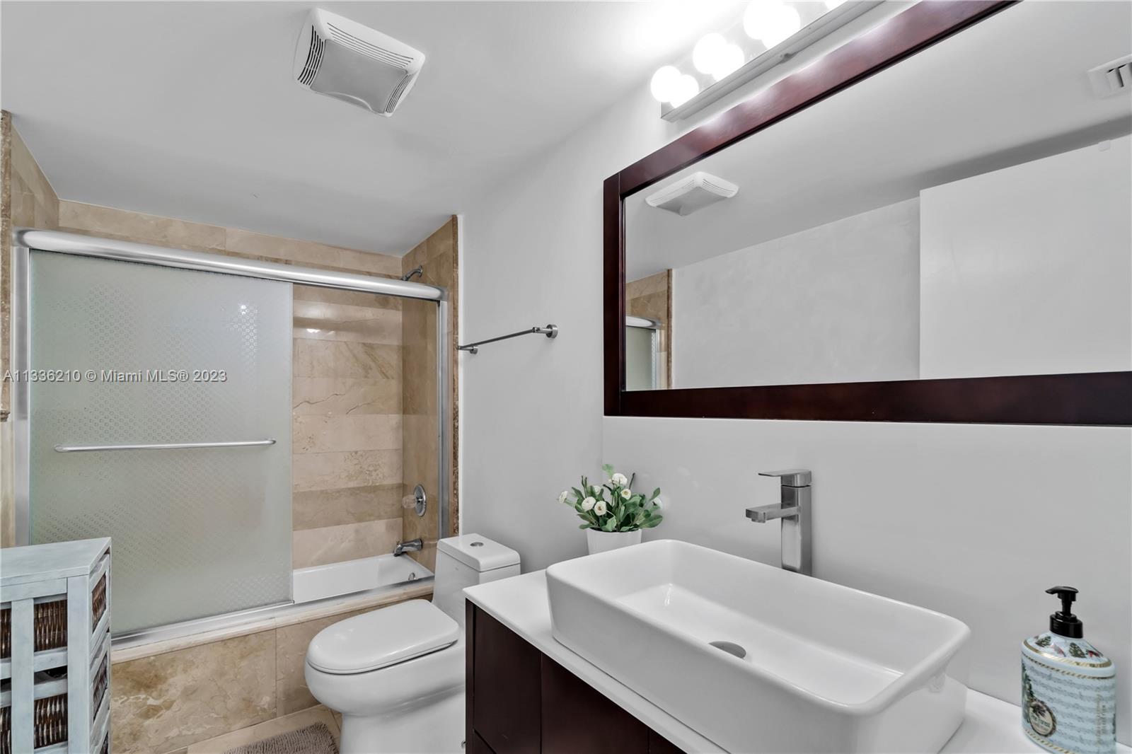 Enjoy living in a beautiful gated community in Key Biscayne; 2 bedroom plus Den, and 2 Bathroom. Unit has Mexican tile in the living room area and in the kitchen, and carpets in the bedrooms. Kitchen has granite countertop and stainless steel appliances. Master bedroom has a large walk-in closet and has direct access to balcony overlooking the beautiful gardens of Botanica. Unit comes with an extra storage space. Key Colony has direct access to the beach, and is located near shops, restaurants, parks and more. Enjoy the resort style amenities Key Colony offers: Beach service with umbrellas and chairs, ocean front pool and ocean front snack bar/restaurant, 12 tennis courts, gym, lap pool, kid’s playground, dog park, party room, delicatessen store and beauty salon.