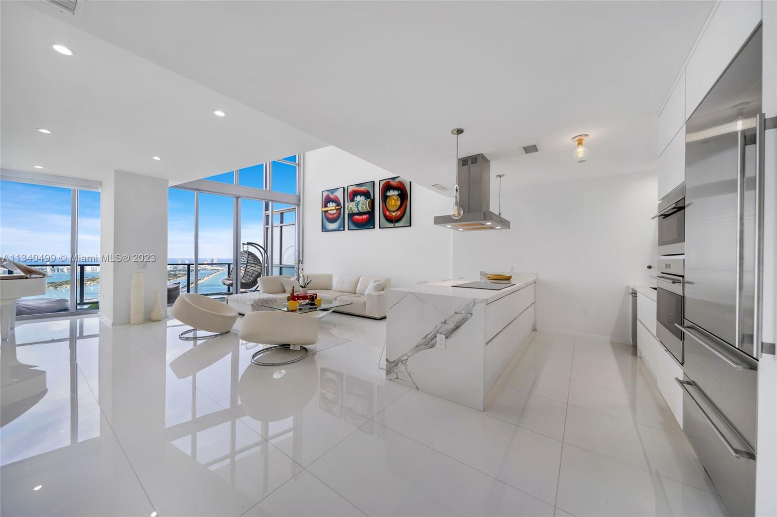 This stunning tri-level, 3 bedrooms / 2.5 baths PH in iconic Marquis is the ultimate Miami house in the skies. 650 feet above the ground, conveniently located in the heart of Downtown Miami across the street from The Miami-Dade (Miami Heat) Arena, The Perez Museum and Frost Museum. A short walk will take you to the Brightline station and a brand new Miami Worldcenter. The condo features soaring 20' ceilings, 2888 sqft under AC and a one of a kind rooftop sky lounge with your own private dipping pool/jacuzzi. The unit comes fully furnished with an upgraded kitchen featuring Wolf and Subzero appliances, waterfall marble island and unlimited, unobstructed ocean & city views. Endless storage space plus an additional storage in the building. Make this absolute dream condo your reality.