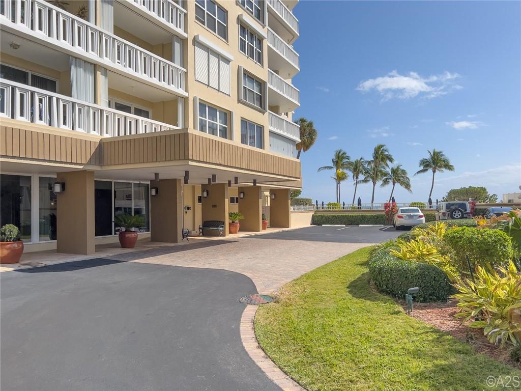 Gorgeous & Spectacular MUST be used to describe this rarely available end unit with direct ocean view & wrap around balcony. Tastefully remodeled in 2022, it features impact windows, shutters, a European Kitchen w/quartz counters and a full-size washer & dryer. You have covered parking and a private storage locker. Upgrades include a coffered ceiling, LED lighting, new fixtures, fans, luxury vinyl plank flooring throughout (except the bathrooms), new AC, BIG storage closets, linen closets in every bathroom, the list goes on. A beautiful 55+ community with deeded beach access, a guarded lobby, beachfront heated pool, fitness room, community room, a beach side BBQ and plenty of activities and close to shops & restaurants. No pets. OK to rent.