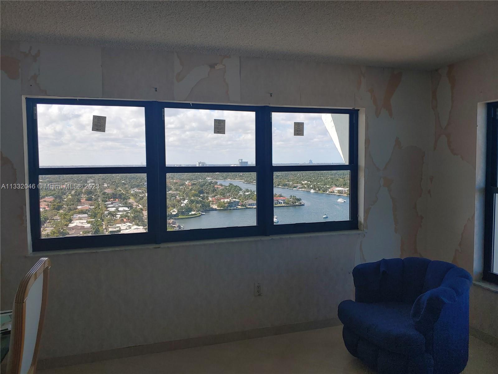 It is with heavy heart; sellers have to give up this awesome view of the ocean and intercoastal! However, their loss is your gain! Property being sold as is therefore you can create your own style of upgrade that is needed. As part of the upgrade planned, impact windows already installed 2022. The rest of the upgrade was halted due to probate. New refrigerator and stove 2021. Furniture will be removed prior to closing. This corner unit is quite large and will be very beautiful with upgrades. There is the view the stadium and intercoastal from the breakfast nook in the kitchen. The dining and living room have view of the intercoastal and skyline. Balcony equipped with hurricane shutters has the most breathtaking view. You have to see it to believe it!